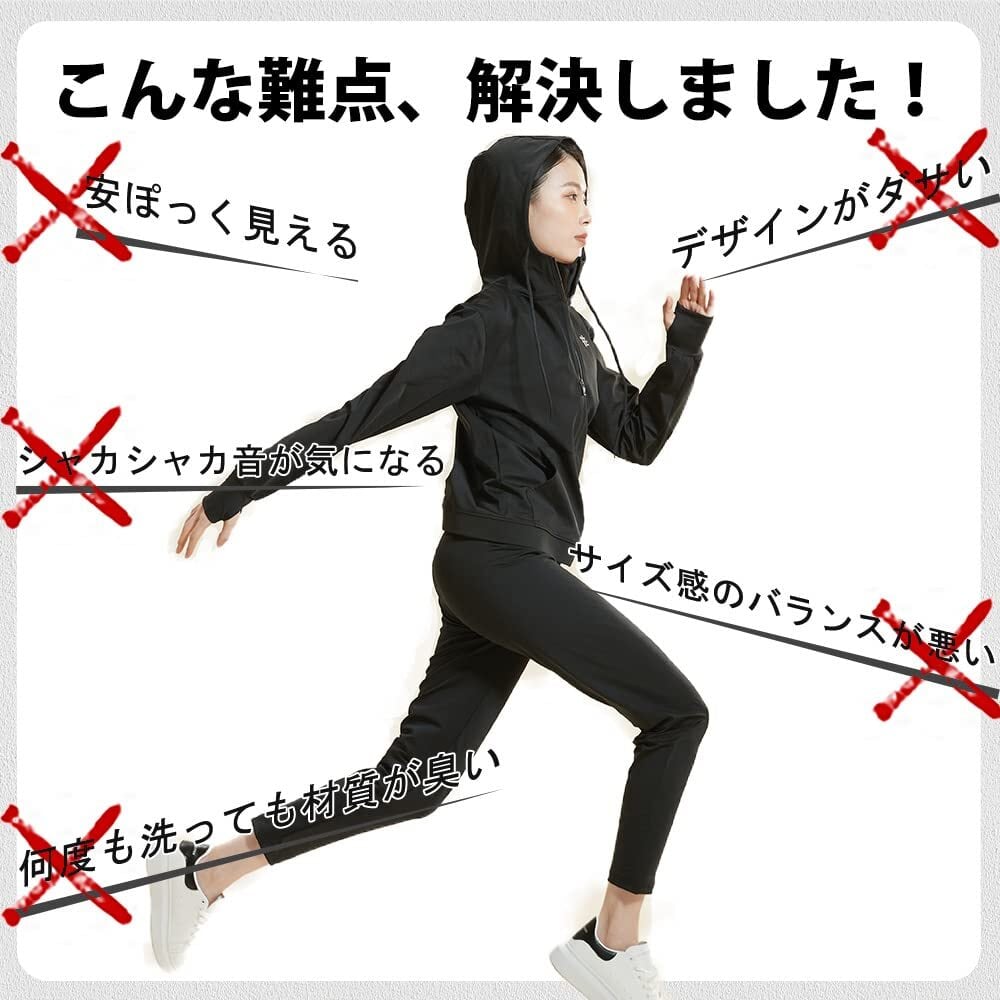 【高密閉性】裏地が高密度ナノコーティングを採用し、運動中に発生する熱を逃さず高体温を保つ、少しでも体を動かすと汗びっしょりになって、通常状態に比べて約5倍の発汗量が達します。ウォーキング、ジョギング、ヨガなど運動中着用すれば、効率な脂肪燃焼が実現。優れた防風、保温性により、日常生活中防寒対策として着ることもできます。