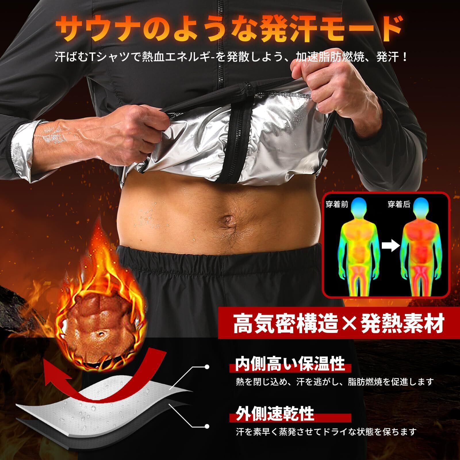 サウナジャケット サウナスーツ 上着 サウナシャツ メンズ 着るサウナ 大きいサイズ 発汗 サウナ効果 スポーツ フィットネス 脂肪燃焼 減量用 蓄熱 保温 夏用 冬用 洗濯可能