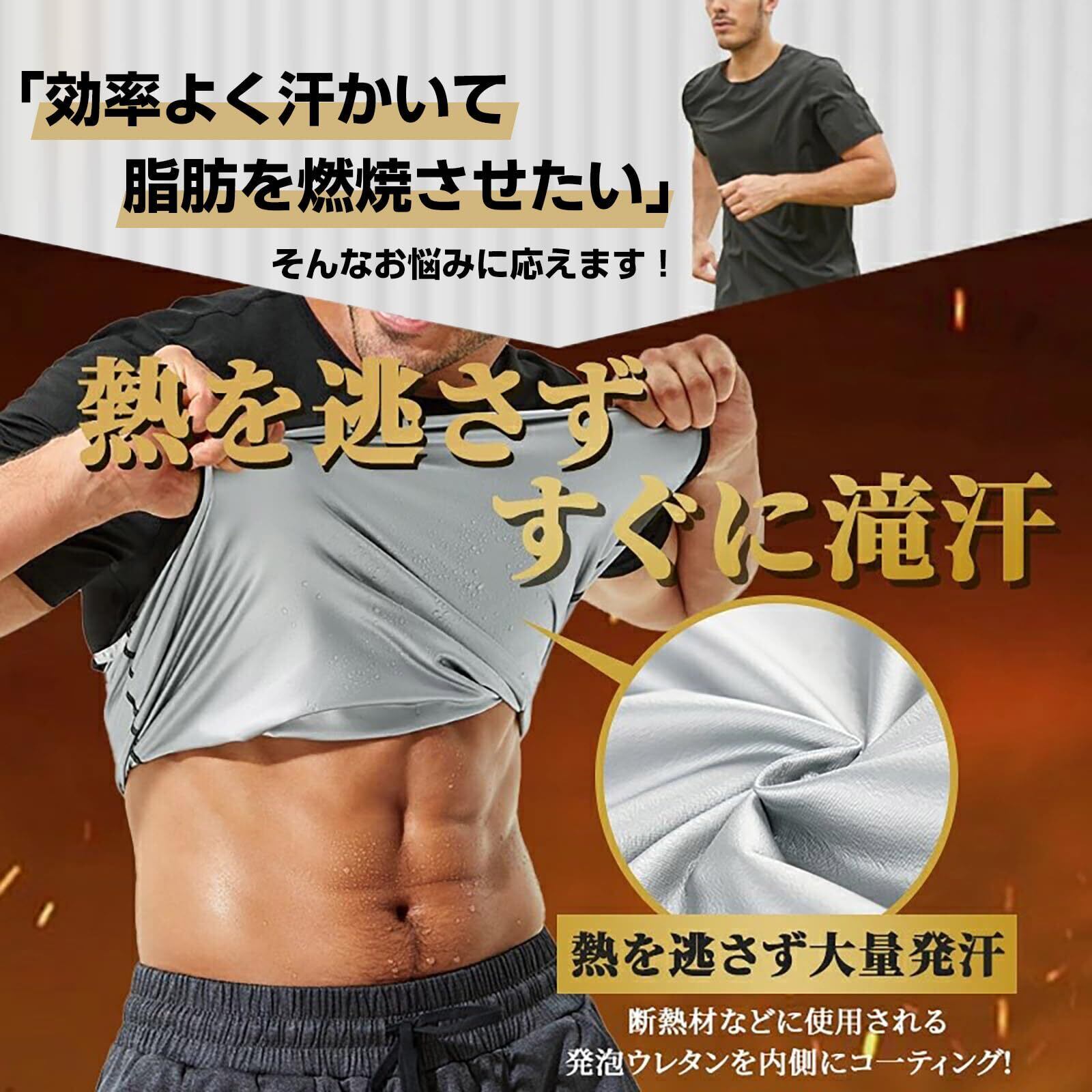 【新着商品】サウナシャツ 半袖 メンズ サウナスーツ ヒートシャツ 発汗 インナー ダイエット スポーツウェア ランニングウエア 洗濯可 減量用 ウォーキング 脂肪燃焼 大きいサイズ