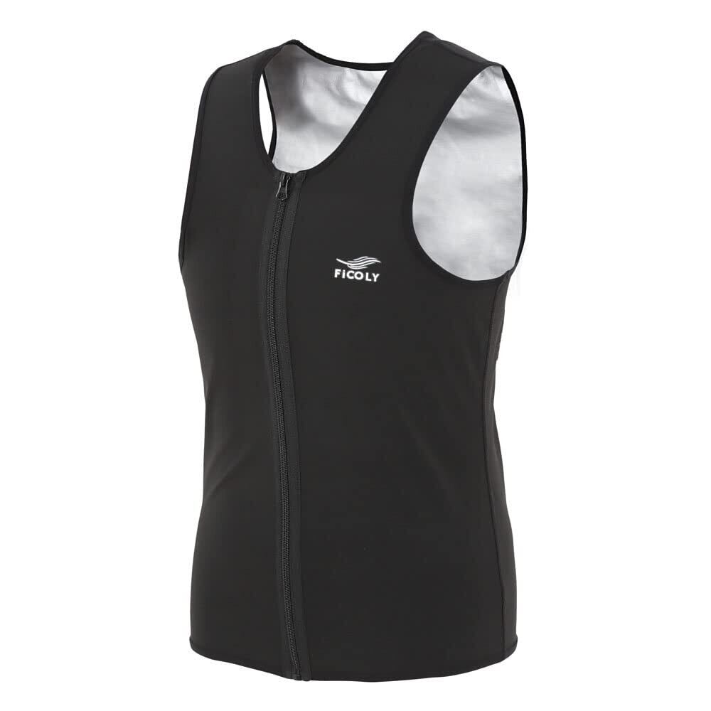 【FiCOLY サウナスーツ ベスト メンズ】ランニングや筋トレなど、着用して運動することで効率的な発汗をサポートする、男性用サウナベストです。外気を通しにくいポリエステル、さらに内側には、高い気密性で熱を逃がしにくい、ポリウレタンコーティングを施しました。シェイプアップやダイエットのための運動などにトレーニングウェアとしてお使いください。服の下でも目立ちにくいストレッチの効いた生地で、動きの邪魔をすることなく着用していただけます。