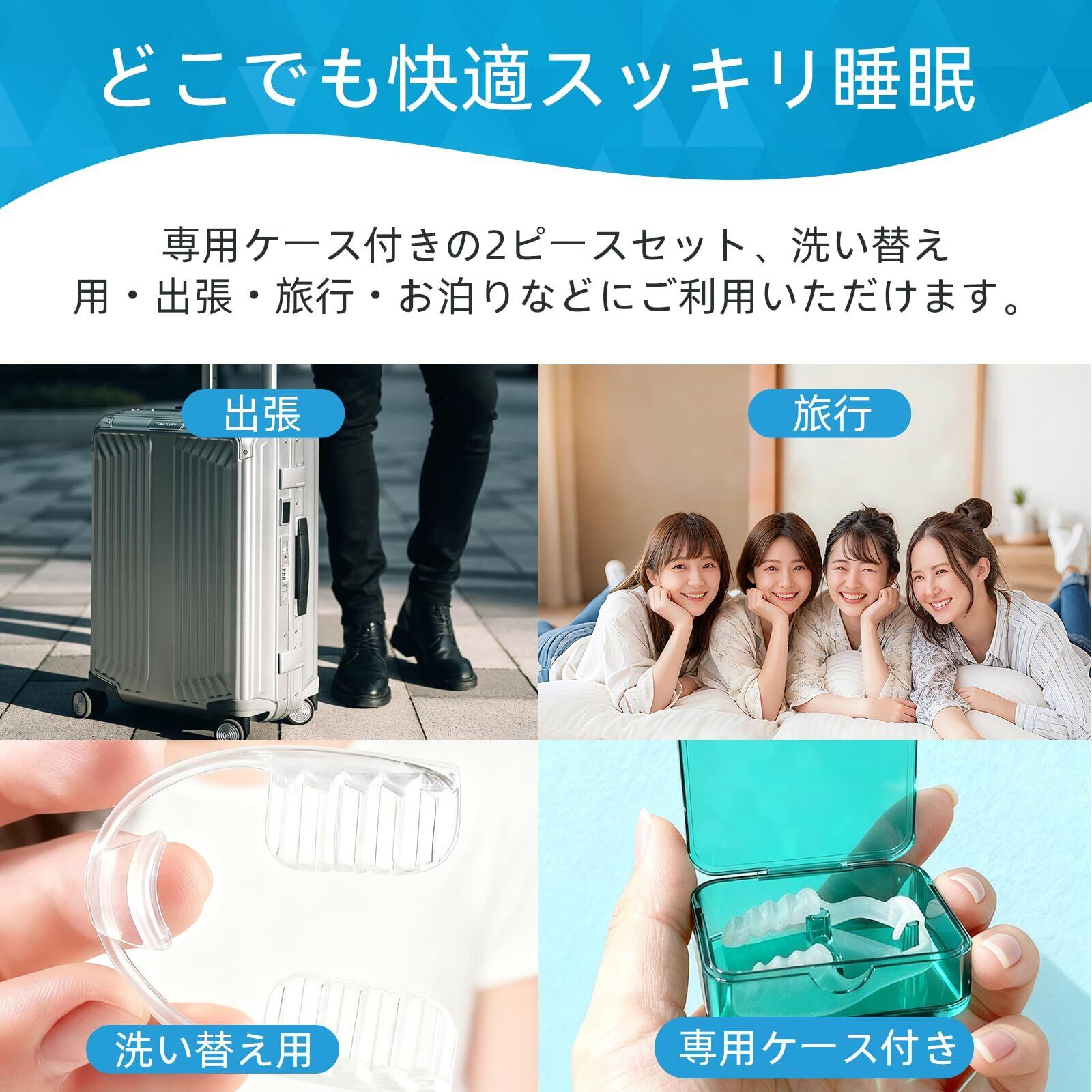 マウスピース 歯ぎしり 2個セット 専用ケース付 はぎしり 歯軋り防止グッズ 型取り不要で簡単装着!夜間の歯ぎしり、食いしばりを効果的に防止し、快適な睡眠をサポート、男女兼用
