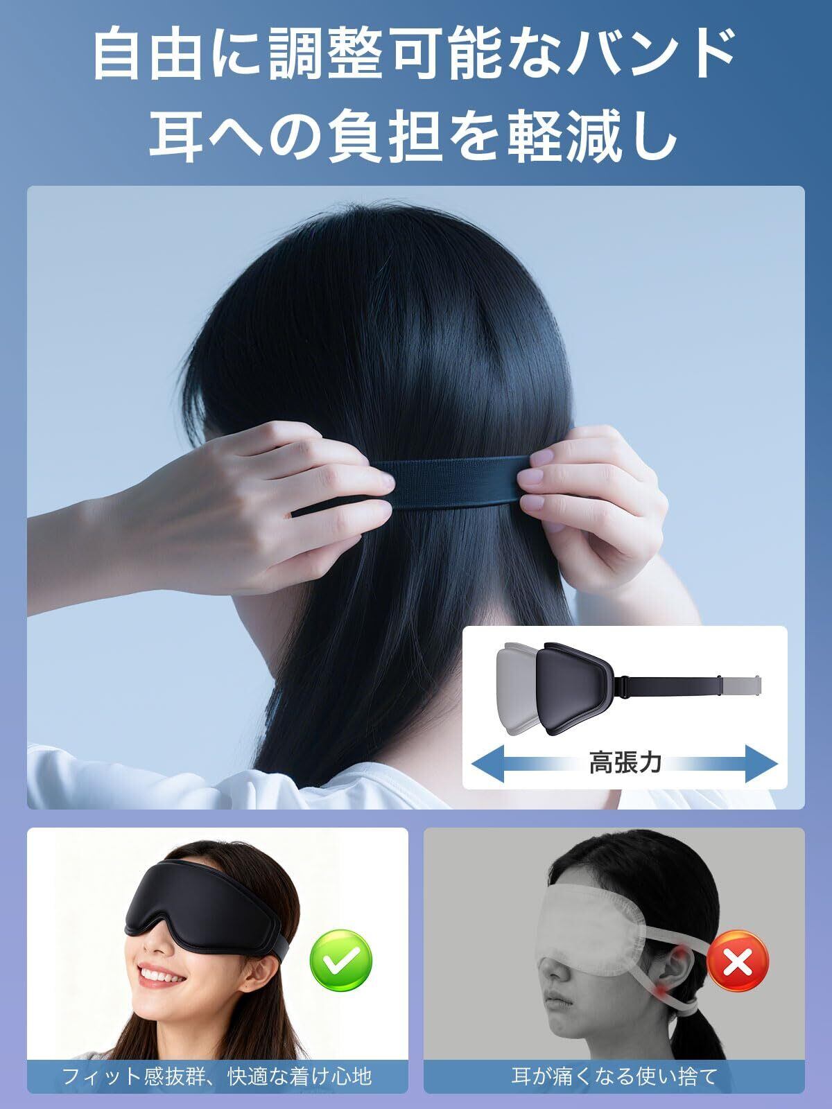 【調整可能・男女兼用】アジャスター付きで、どんな頭囲にもピタリとフィット。サイズ調整のいらない快適さで、アイマスク ギフトとしても最適です。日々の休息に、オーダーメイドのような装着感を睡眠用アイマスクです。