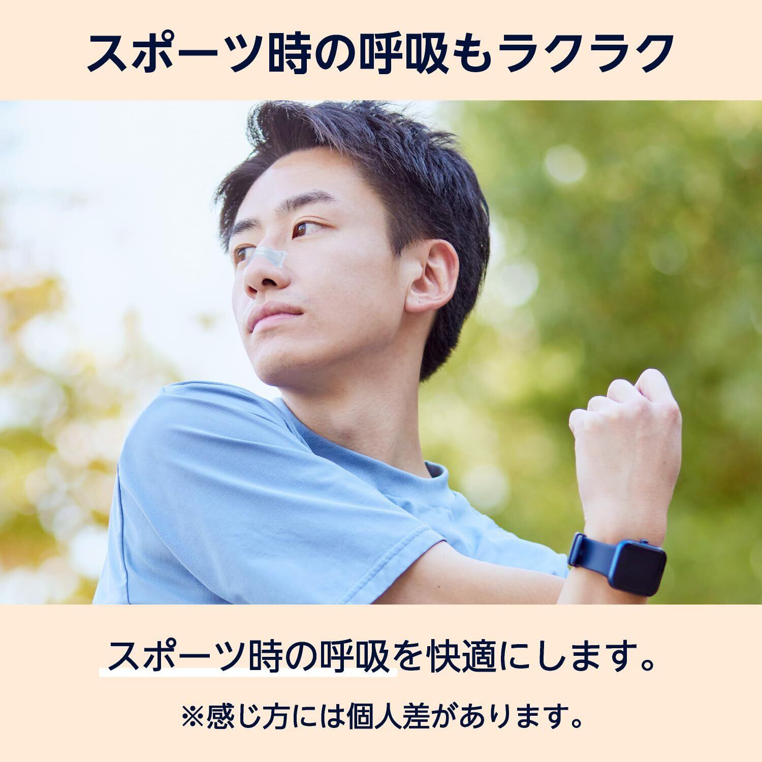 ご使用上の注意●本品は鼻腔を拡げるために鼻に貼付するテープです。他の用途には使用しないでください。 ●過呼吸の方は使用しないでください。 ●5歳未満のお子様には使用しないでください。 ●絆創膏の刺激に弱い方や、キズ、湿疹、日焼けなど皮膚に異常がある場合は使用しないでください。 ●肌の弱い方は使用前に二の腕の柔らかい部分などに貼って、発疹、発赤、かゆみ、かぶれがないかお確かめください。 ●本品の使用により発疹、発赤、かゆみ、かぶれ、痛みなどの症状が現れた場合、直ちに使用を中止し医師、薬剤師または登録販売者に相談してください。●1日に10時間以上続けて使用しないでください。 ●貼り直すとテープの粘着力が低下し、はがれやすくなります。 ●1回の使用ごとに廃棄し、再使用しないでください。 ●直射日光、水ぬれ、火気および高温・多湿を避け、清潔な場所に保管してください。 ●お子様の手の届かないところに保管してください。 ●鼻通りの感じ方には個人差があります。
