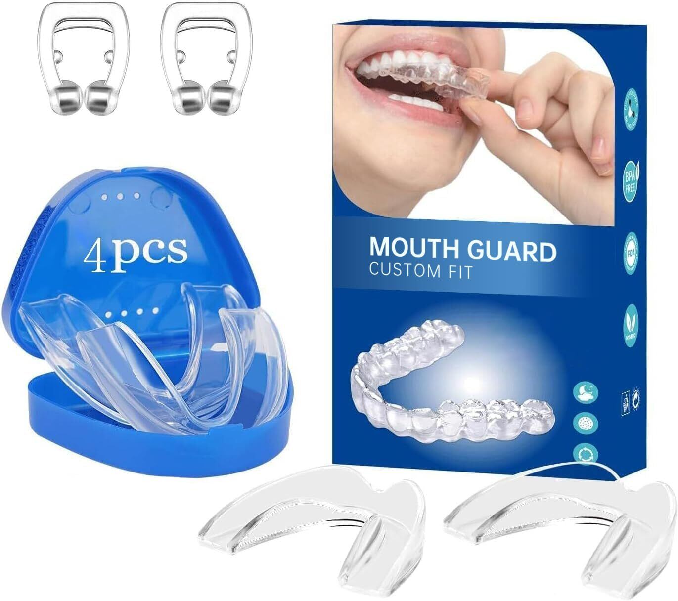 【在庫セール】マウスピース 歯ぎしり いびき 防止グッズ 睡眠改善 よく寝る 歯ぎしり イビキ 鼾 対策 睡眠質の改善 睡眠用 ガード 歯を保護する 成形可能 格闘技可能 男女兼用 4個セット (大サイズ2個*小サイズ2個)