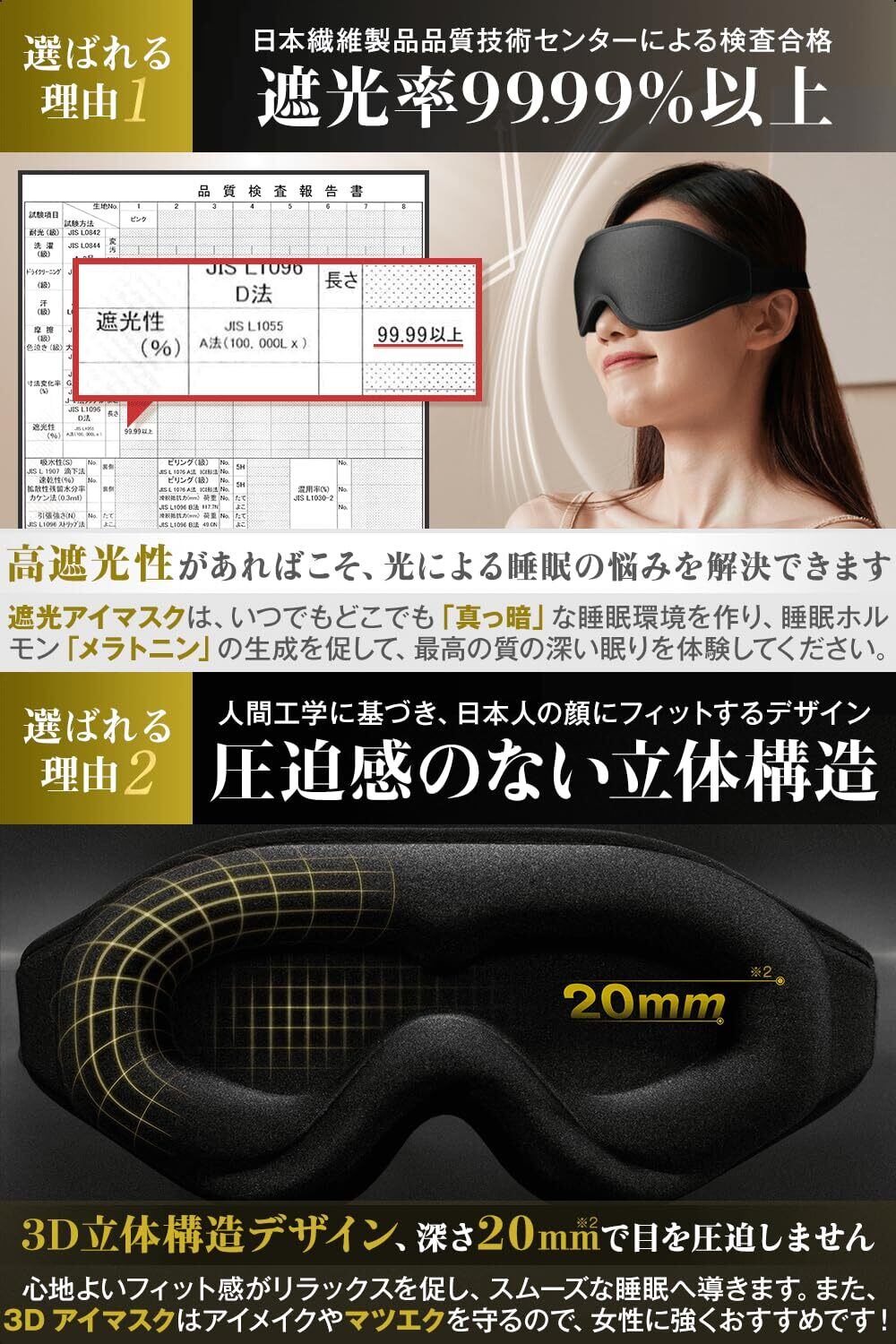 【国内認証済み・遮光率99.99%】最高クラス1級の遮光性が外部の光をほぼ遮断し、本当に「真っ暗」な体験をあなたの目で確かめてください。暗い睡眠環境がメラトニンの生成を促進し、スムーズな睡眠へ導きます!(暗闇が怖くない方におすすめ)