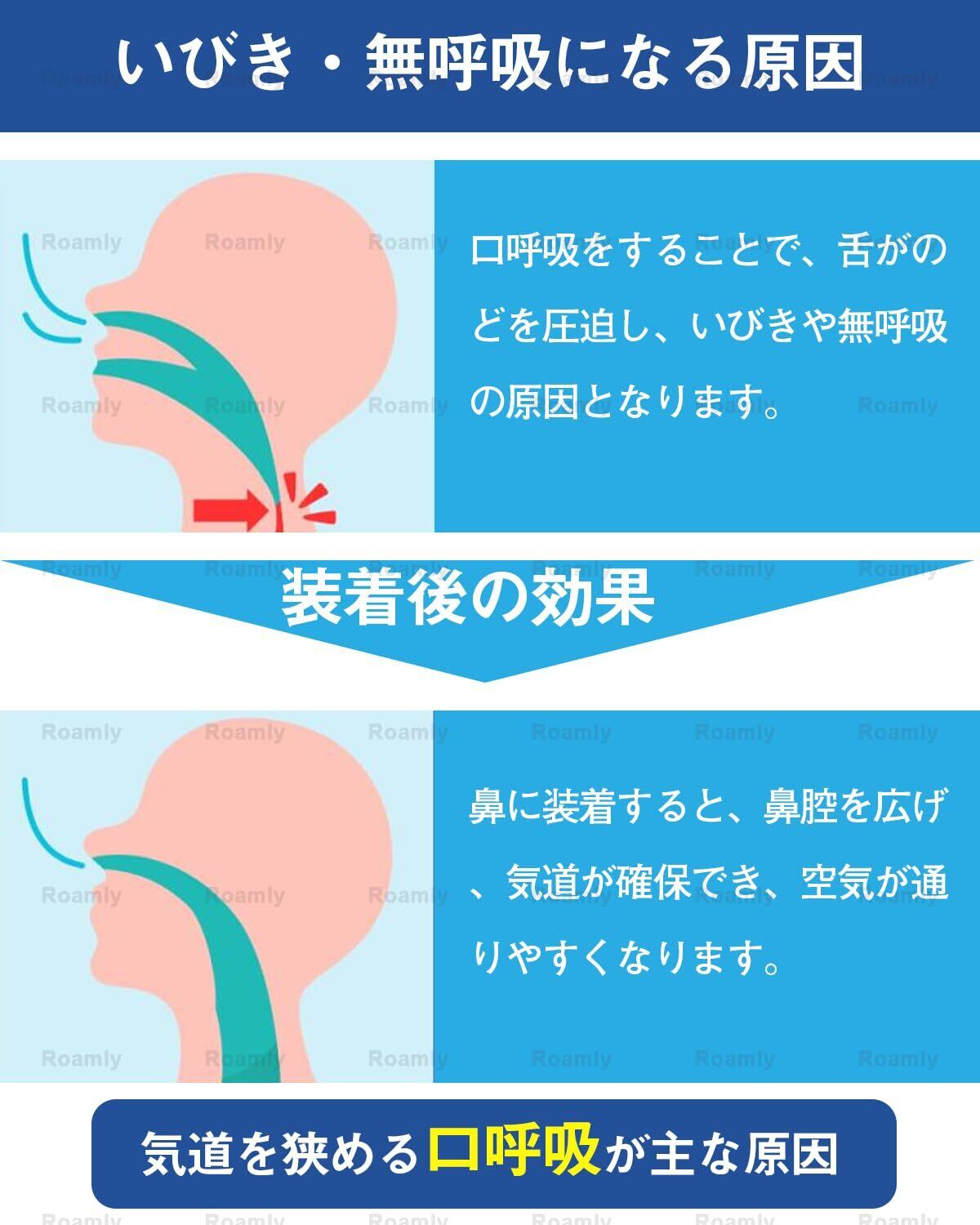 ロムリー(Roamly) いびき防止グッズ 2個セット 専用ケース付き『鼻呼吸促進・口呼吸防止・のどの乾燥対策』鼻腔拡張 ノーズクリップ 男女兼用 透明 洗浄可能 シリコン製