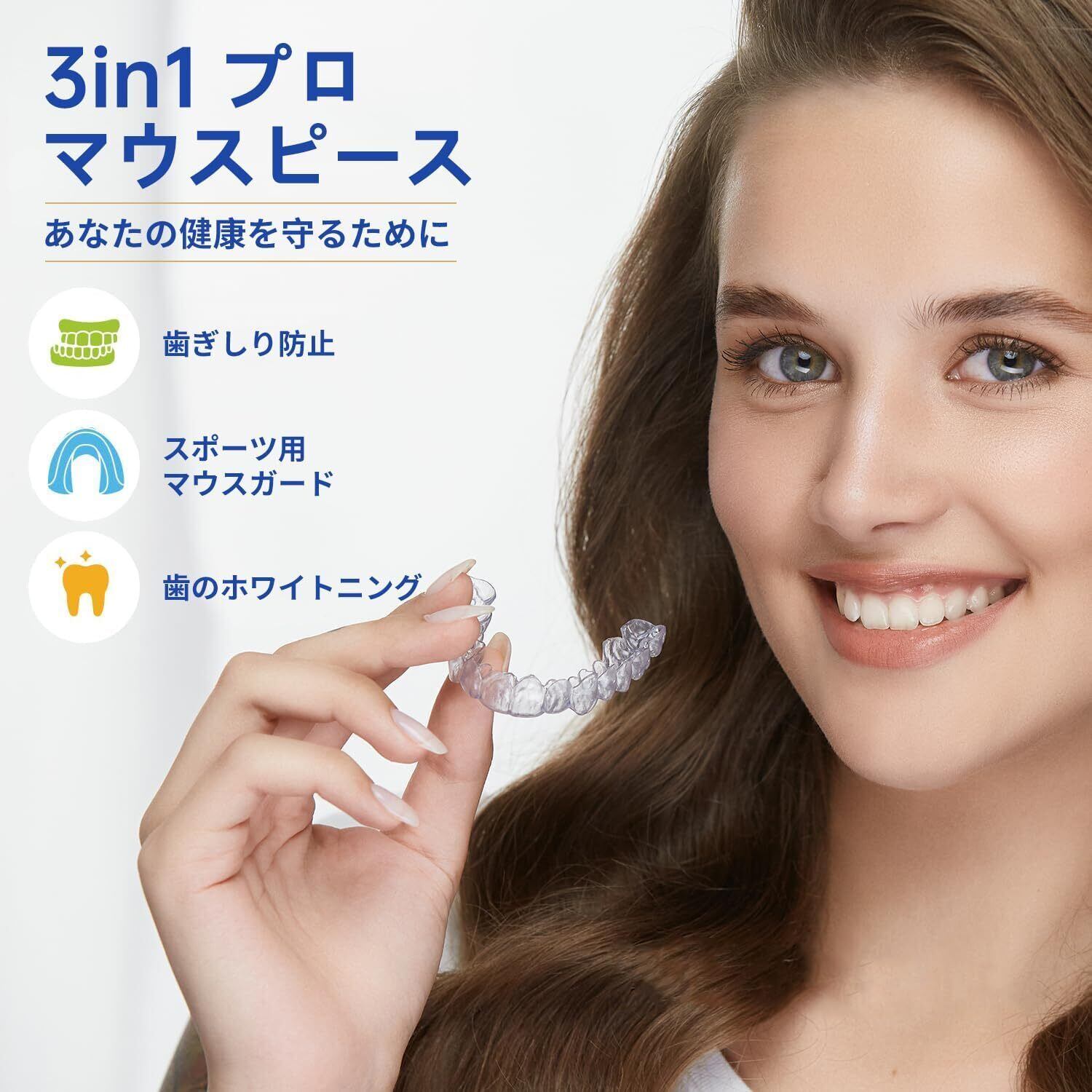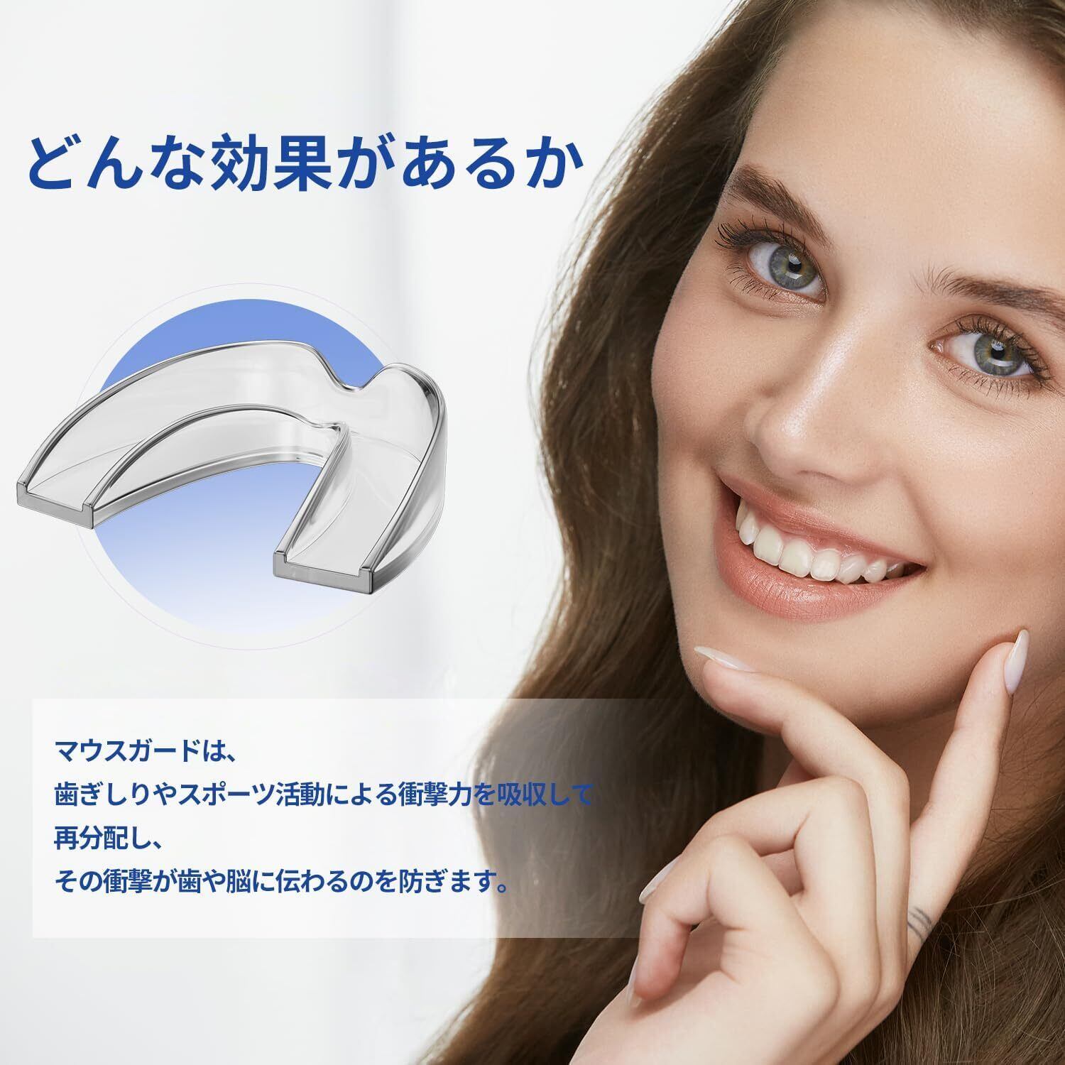 【安眠&美しい笑顔をお求め人におすすめ】 「歯ぎしりが気になる」「いびきでお困りではないですか?」当てはまる方は、ぜひ一度お試しください。このマウスピースは、そんなお悩みに同時にお応えします。就寝中の歯ぎしり・食いしばりから歯を守り、顎の疼痛や疲労感を和らげるのはもちろん、咬合を調整する役割も果たします。さらに、美しい笑顔と口元を保ちたい方にも。良い印象に繋がる素敵な笑顔の基本です。お口の健康と美しさの両面から、あなたの快適な生活をサポートします。