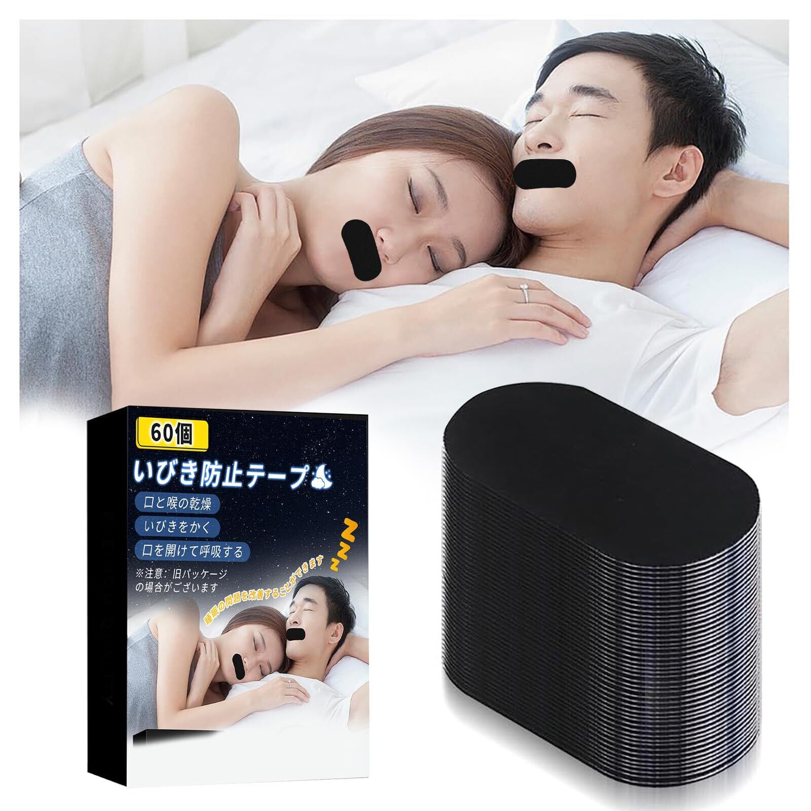 いびき防止グッズ 60個 鼻呼吸 口呼吸防止テープ のどの乾燥 いびきの音を軽減 いびき対策グッズ 口閉じテープ予防に 肌にやさしいタイプ鼻呼吸促進 睡眠補助 男女兼用 睡眠用