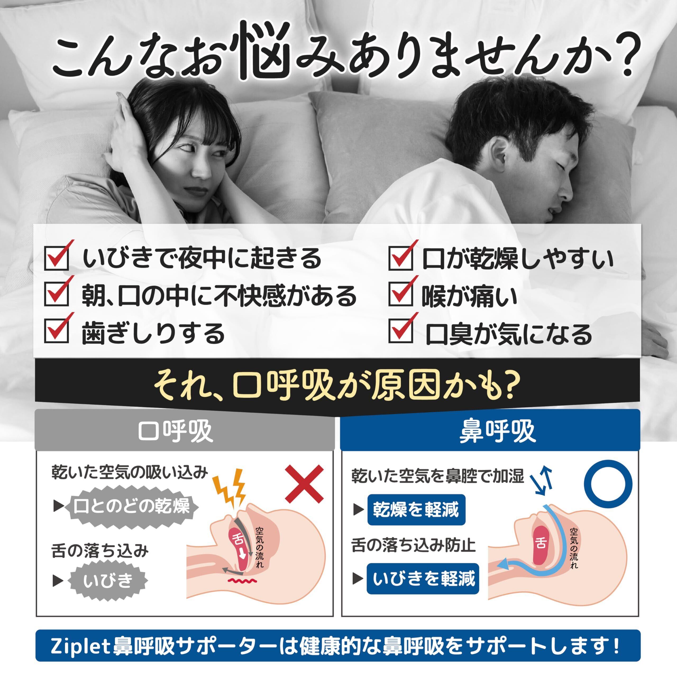 いびき防止グッズ 鼻呼吸 口呼吸 防止 顎固定 サポーター いびき 対策 グッズ いびき防止 いびき対策 いびき対策グッズ Ziplet