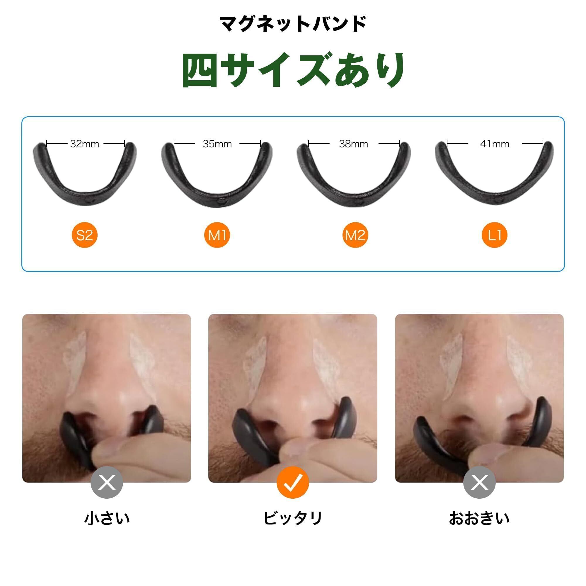 【充実の大容量セット内容】 マグネットノーズバンドはS・M・L・XLの4サイズを完全網羅。日本人の鼻形データに基づいて設計された特製サイズで、あらゆる鼻型にぴったりフィットします。専用アプリケーター付属で簡単装着可能。さらに15日分の交換用磁気テープを同梱し、約2週間分の使用量を確保。初めての方でも試しやすい大容量セットです。