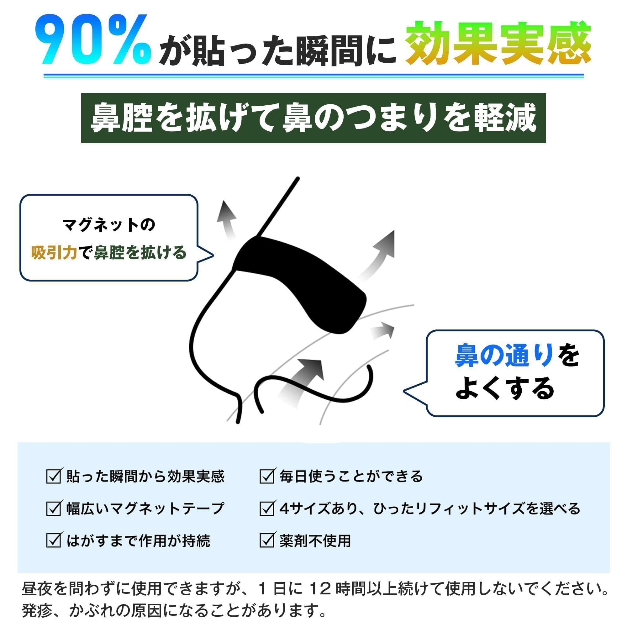 鼻腔拡張マグネットノーズバンド いびき防止グッズ 鼻呼吸サポート 鼻腔拡張テープ いびき軽減 鼻づまり改善 静かに眠る 着心地快適 繰り返し使用可能 15日分 テープ付き 4サイズ選べる 男女兼用(アークブラック)