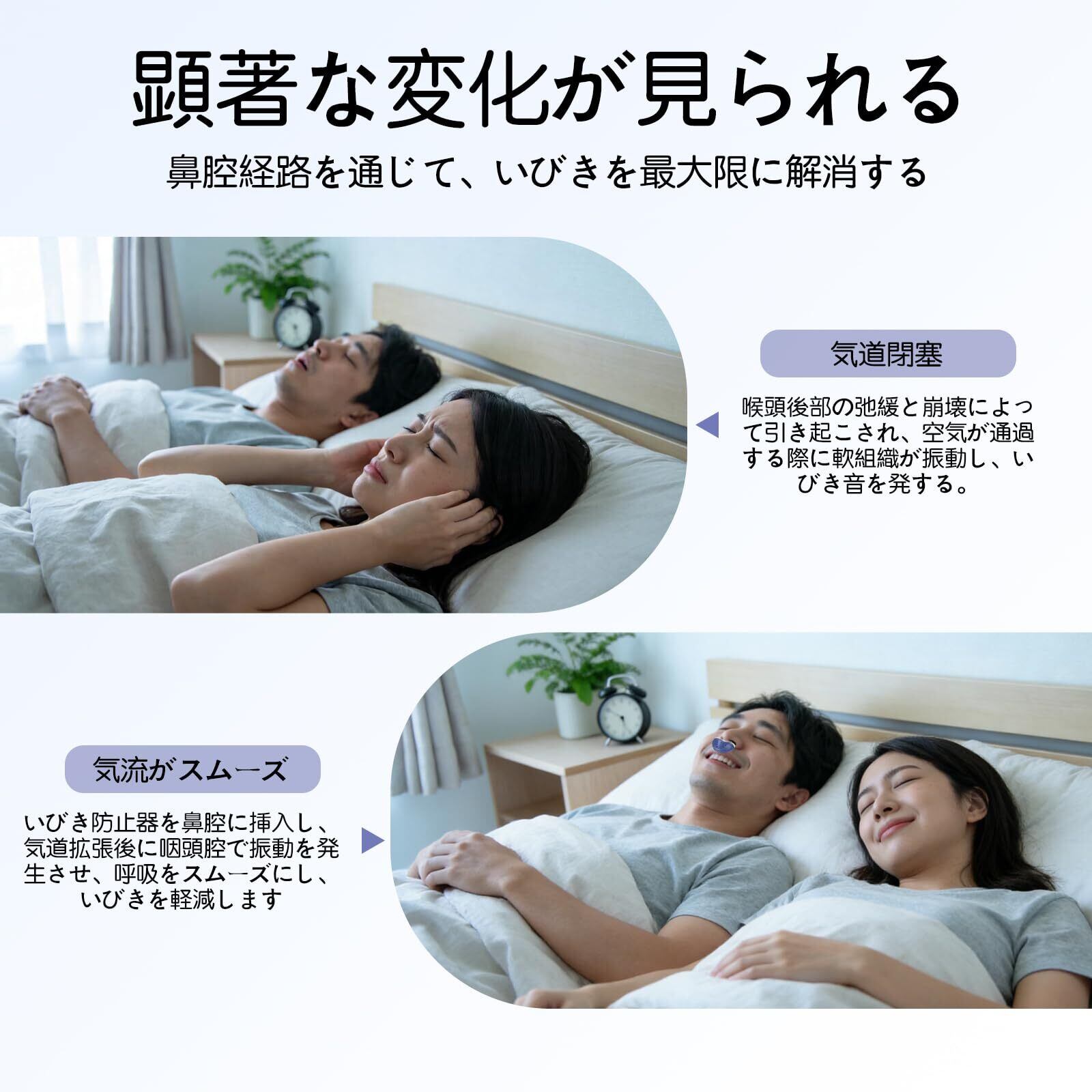 【いびきを止める装置の原理】いびきを止める装置を鼻の穴に差し込み、スイッチを入れると、いびきを止める装置が鼻腔に入り、気道に潤いを与え、咽頭筋のうっ血を抑えるので、呼吸がスムーズになり、いびきを効果的に抑えることができ、夜中に目が覚めたり、いびきで家族に迷惑をかけたりすることがなくなり、一晩中楽に静かに休むことができます。