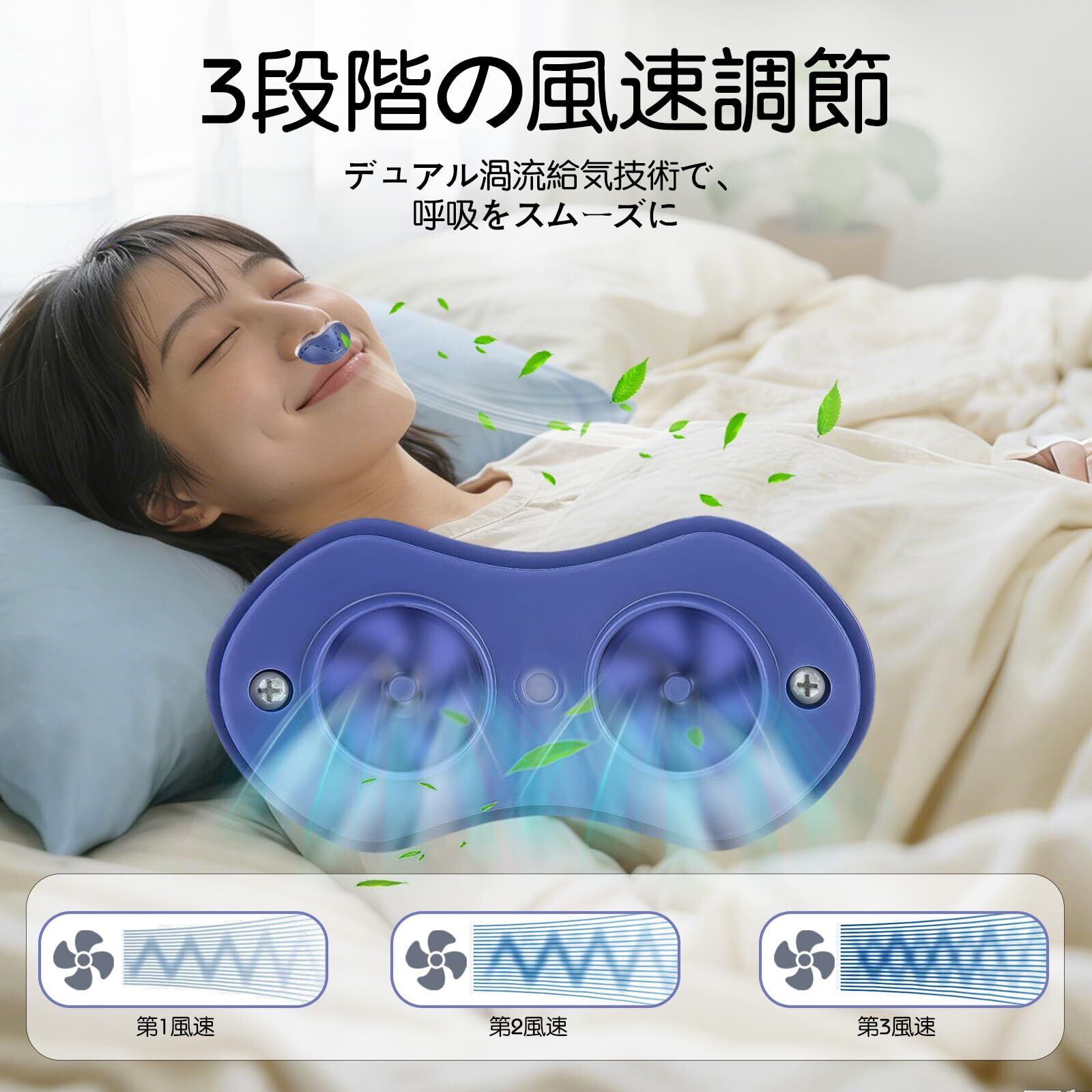 いびき防止グッズ 電動ノーズクリップ 2-in-1 第二世代 3段階風速調節可能 鼻マスク ノーズプラグ 鼻栓 ノーズマスク 空気循環 鼻呼吸促進 快適装着 睡眠時無 男女兼用 (青)