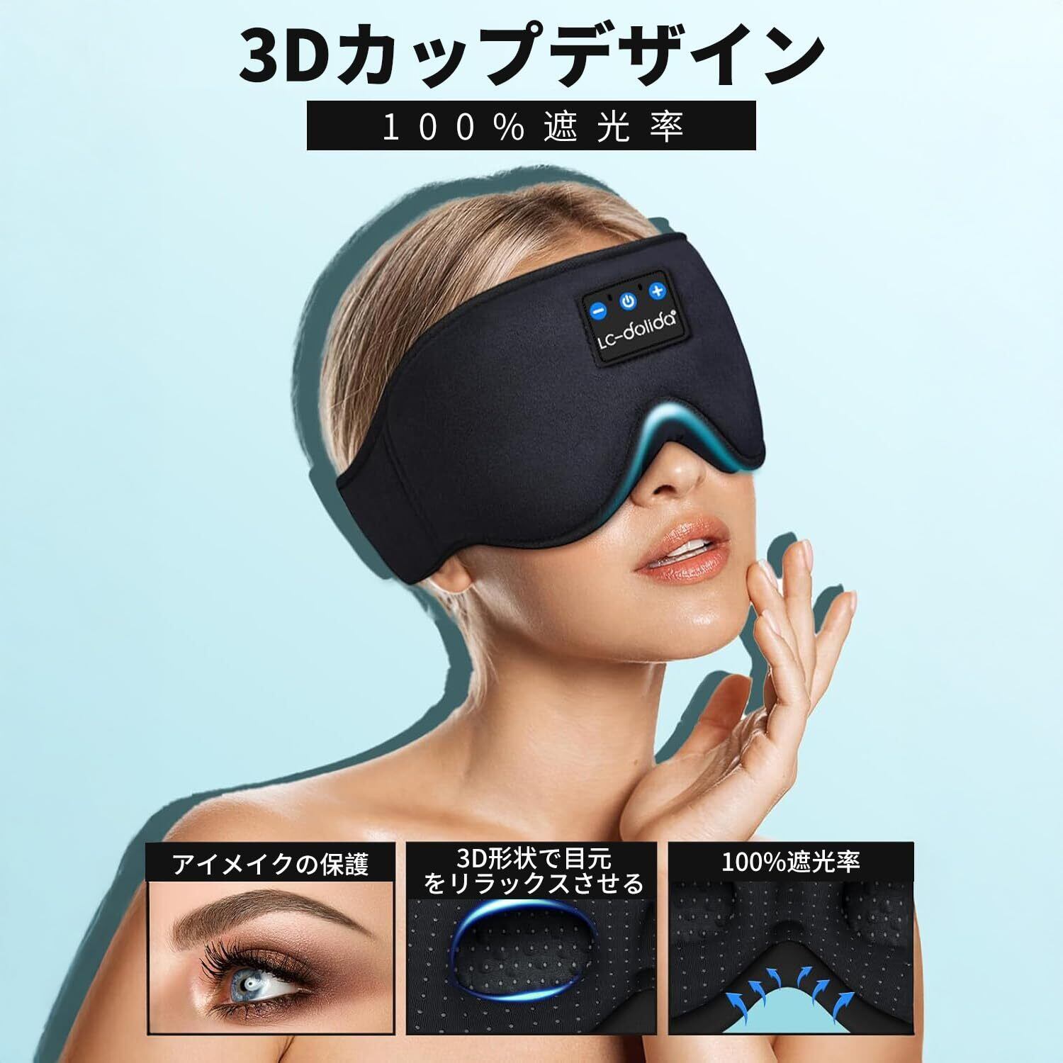 【数量限定】LC-dolida アイマスク 睡眠マスク 睡眠ヘッドホン Bluetooth ワイヤレス音楽アイマスク 横向き寝用 ヘッドホン付き睡眠マスク 超薄型ステレオスピーカー 睡眠に最適 技術適合証明済 ブラック