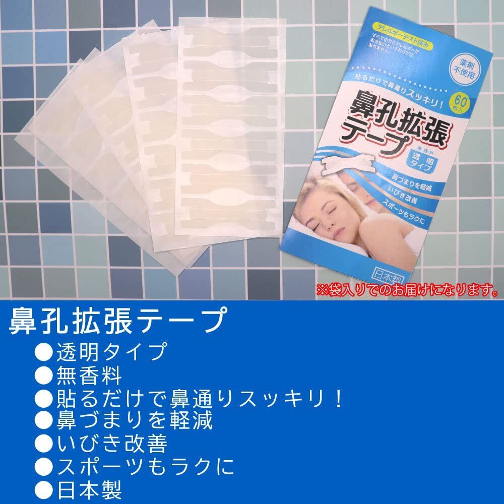 鼻腔拡張テープ 鼻孔 いびき防止グッズ お徳用 60枚入 透明タイプ 日本製