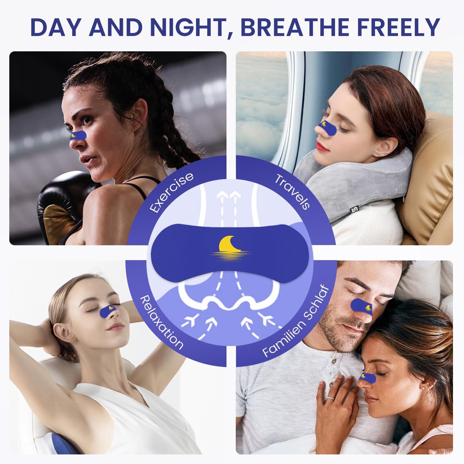 鼻呼吸をサポートする鼻腔拡張テープ:鼻の通りを広げる鼻拡張テープで、鼻呼吸を促進。口呼吸によるいびきや睡眠の質の低下を防ぎ、就寝時のはなづまり解消に効果的です