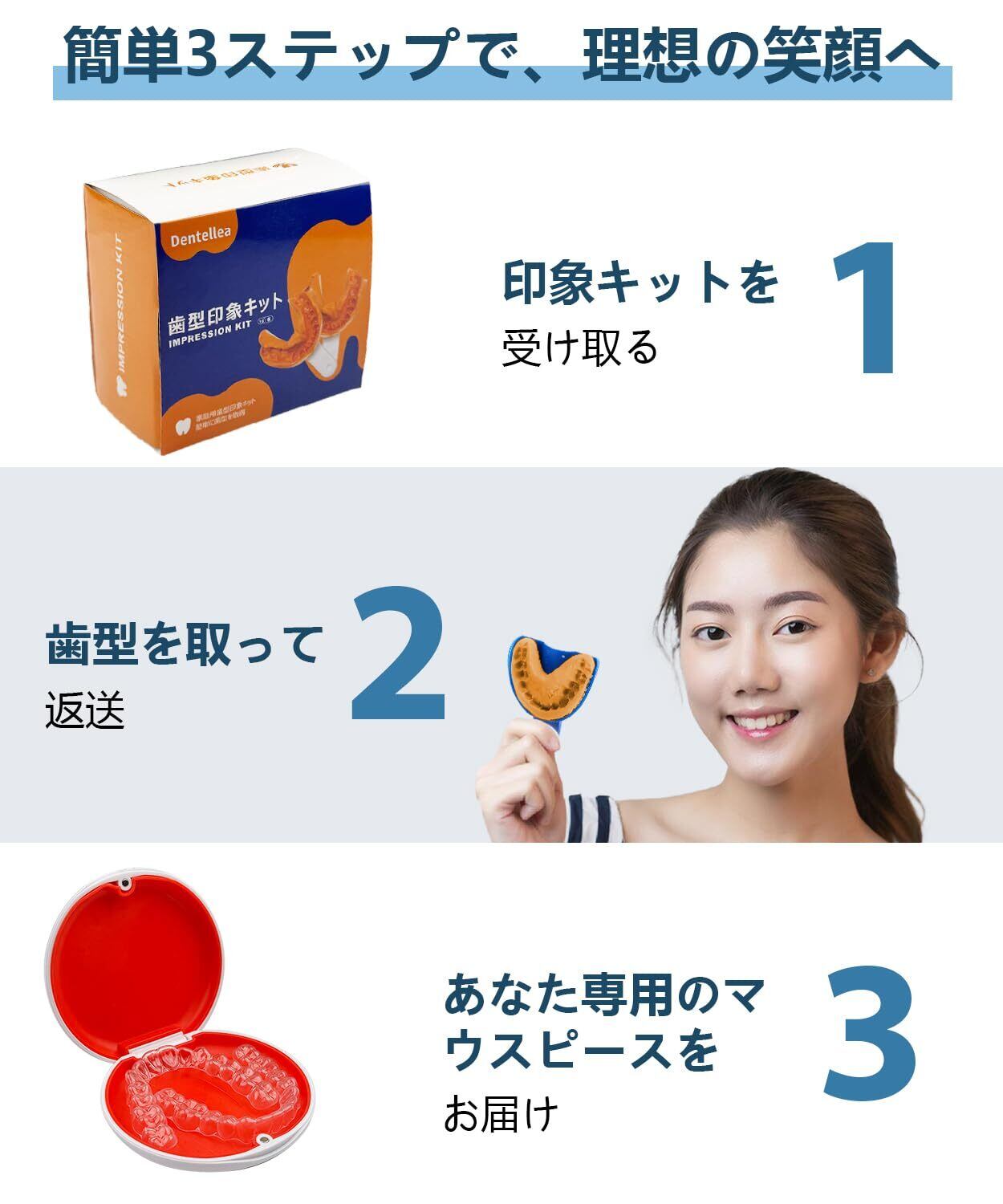 【自宅でフィット感アップ】上下どちらの歯にも対応したDIY印象キットをお届けします。ご自宅で簡単に調整でき、自分に合った形状のマウスピースを手軽にお作りいただけます。
