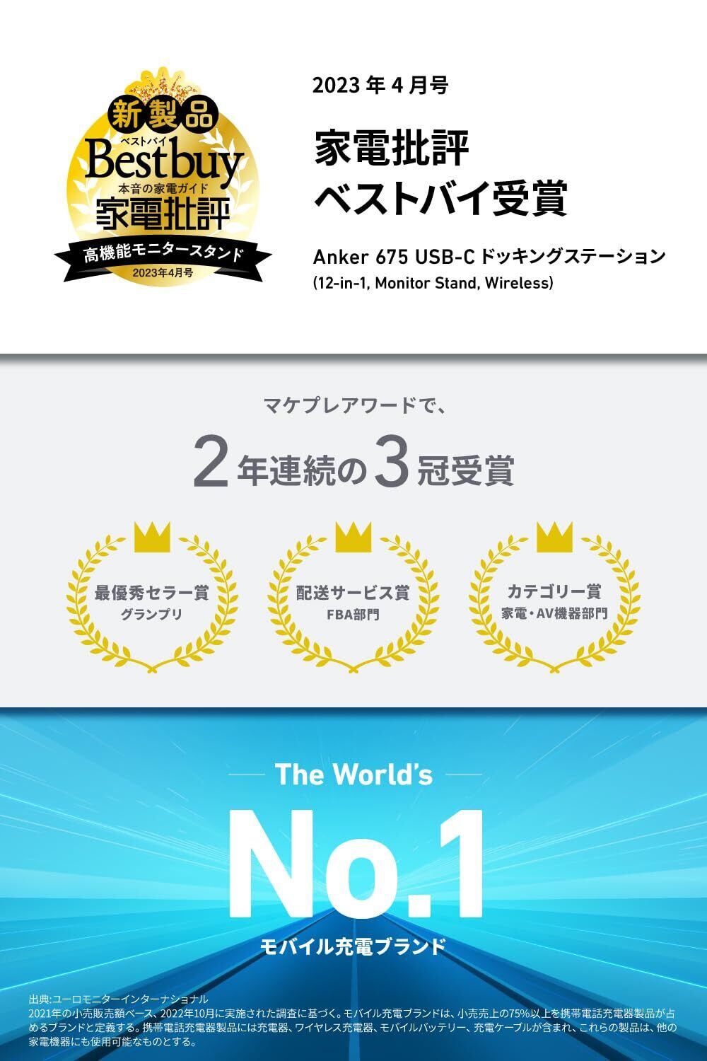 Anker 675 USB-C ドッキングステーション (12-in-1, Monitor Stand, Wireless) モニタースタンド ワイヤレス充電 100W USB PD対応 4K HDMIポート microSD&SDカードスロット 3.5mmオーディオジャック イーサネットポート 10Gbps USB-C USB-Aポート搭載 高速データ転送