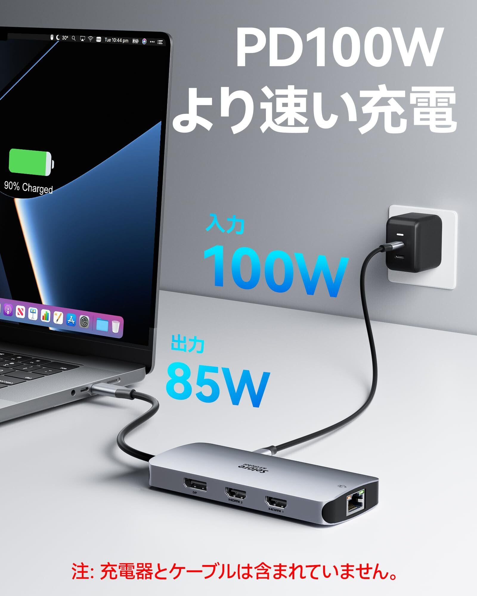 Selore 8in1ドッキングステーション hdmi 2つ 4K対応 3画面出力 モバイルタイプ 100W 急速充電 Displayport LAN 2 USB-A/USB-C 3.0ポート usb ハブ type-c MacBook Pro/Air 2020 Dell/Lenovo Yoga HPなどタイプC機種に対応