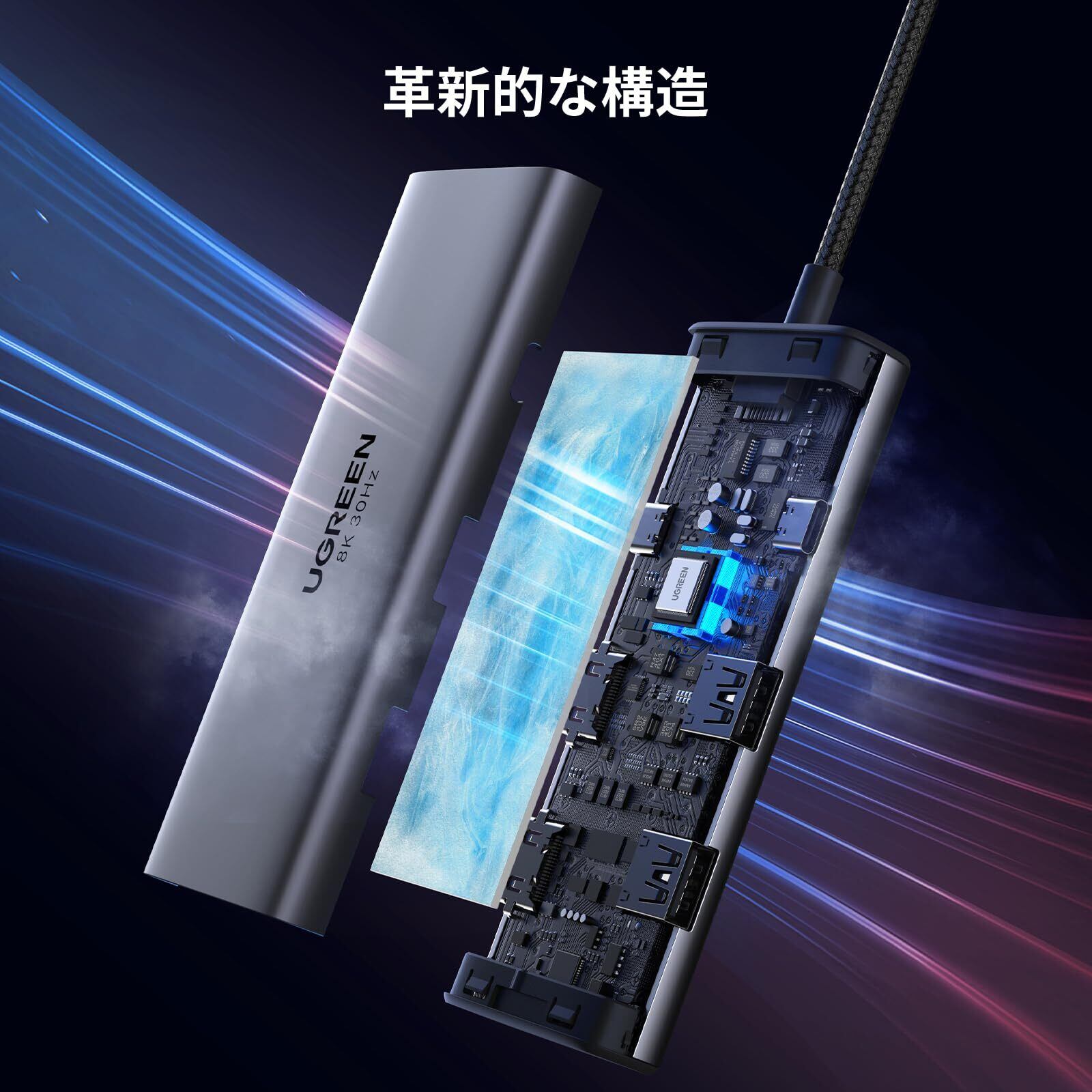 UGREEN Revodok 206 6 in 1 USB Cハブ 2*HDMI出力 ドッキングステーション 4K@60Hz 単一出力8K@30Hz 100W PD急速充電 5Gbps高速データ転送 MacBook M1/M2, XPS, ThinkPad, iPad Pro/Airに対応