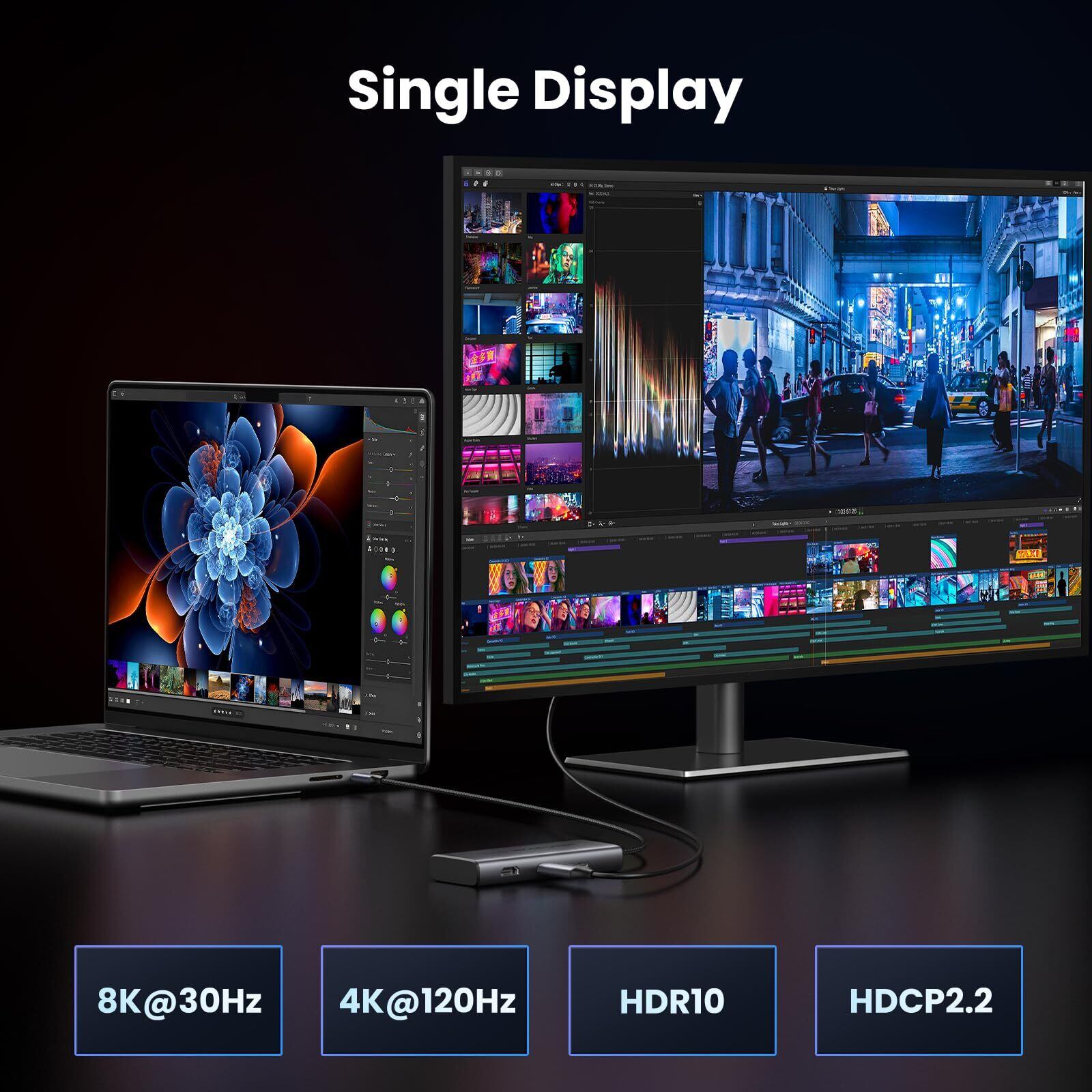 【8K/30Hz&4K60Hz出力】USB C デュアル HDMI アダプターの HDMI 2 ポートは、最大 8K@30Hz の解像度を提供し、驚くほどのディテールと超鮮やかな色を生み出します。 ビジュアル コンテンツを作成したり楽しんだりすることがこれまでになく便利になりました。【ご注意:USB Cポートはビデオ出力に対応しておらず、HDMIポート2つだけでビデオを出力することができます。】
