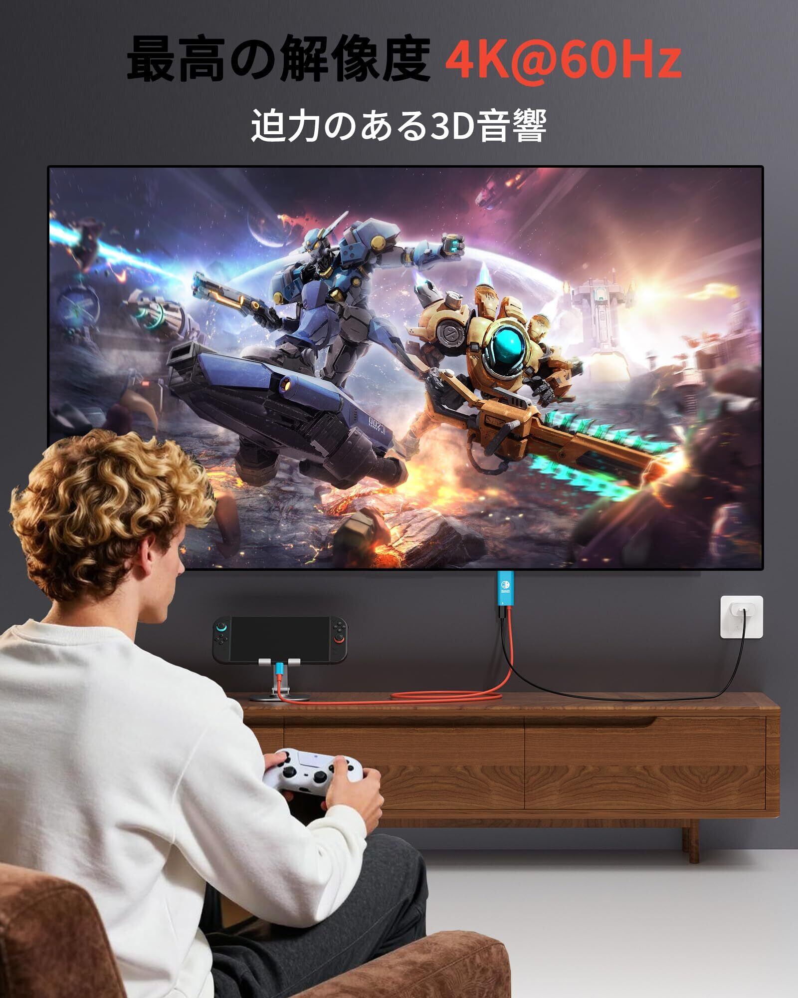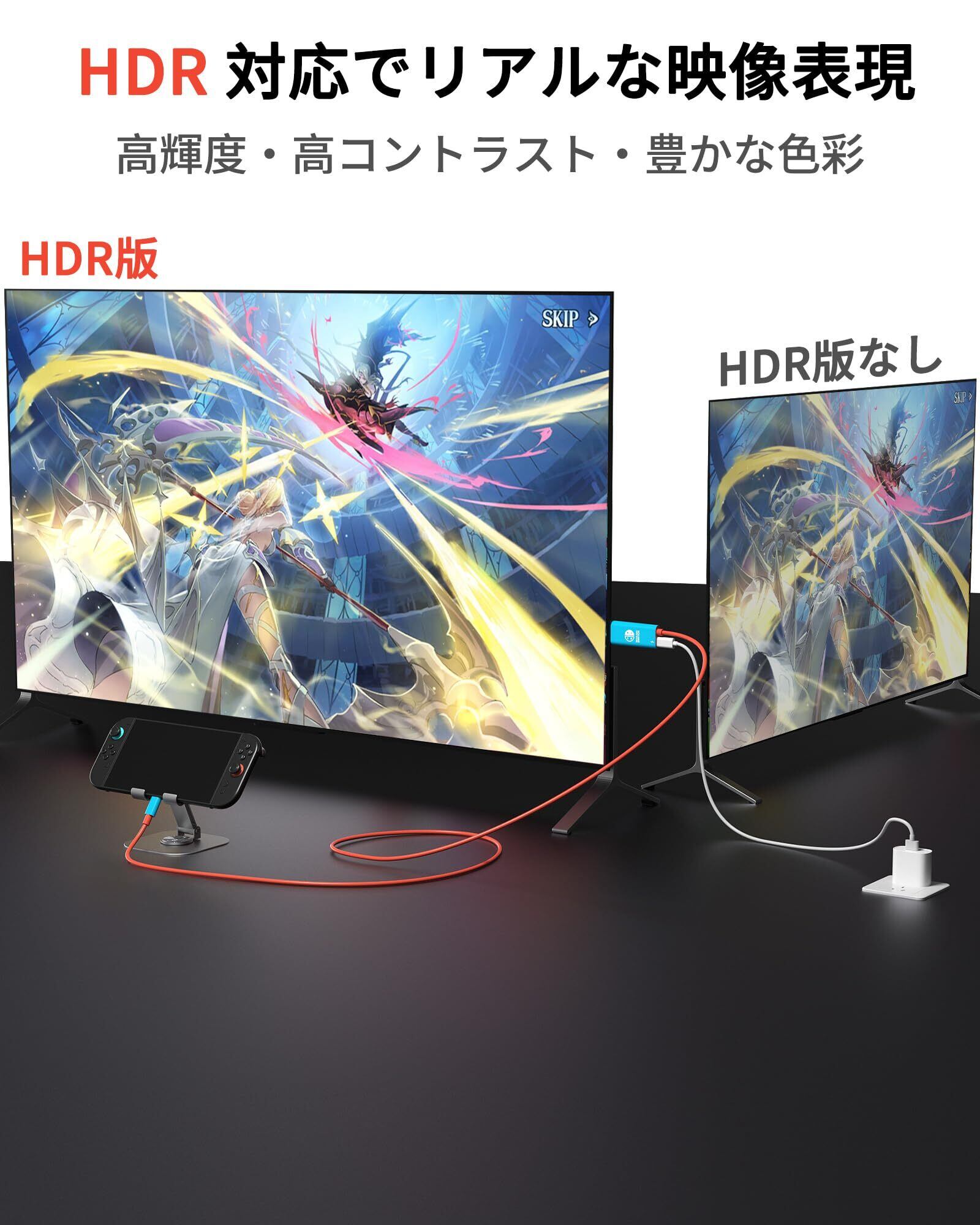 【4K解像度&鮮明な画質】 Switch 2 ドックはHDMI2.0により4K60Hz出力と18Gbps伝送に対応し、遅延を抑えた滑らかな映像を実現します。HDR対応で明るさとコントラストが向上し、ゲームや映画の臨場感を高めます。Switch 2/OLEDのほかSteam DeckやROG Allyでも使用でき、大画面で快適なプレイや視聴を支える映像出力アクセサリーです。テレビやモニターへの接続も簡単で、ソロプレイからマルチプレイまで幅広いシーンに対応します。高精細映像を求めるユーザーに適した設計です。(スイッチは1080Pにのみ対応しています。Switch 2 ドックはキャプチャーボードには対応していません。)。
