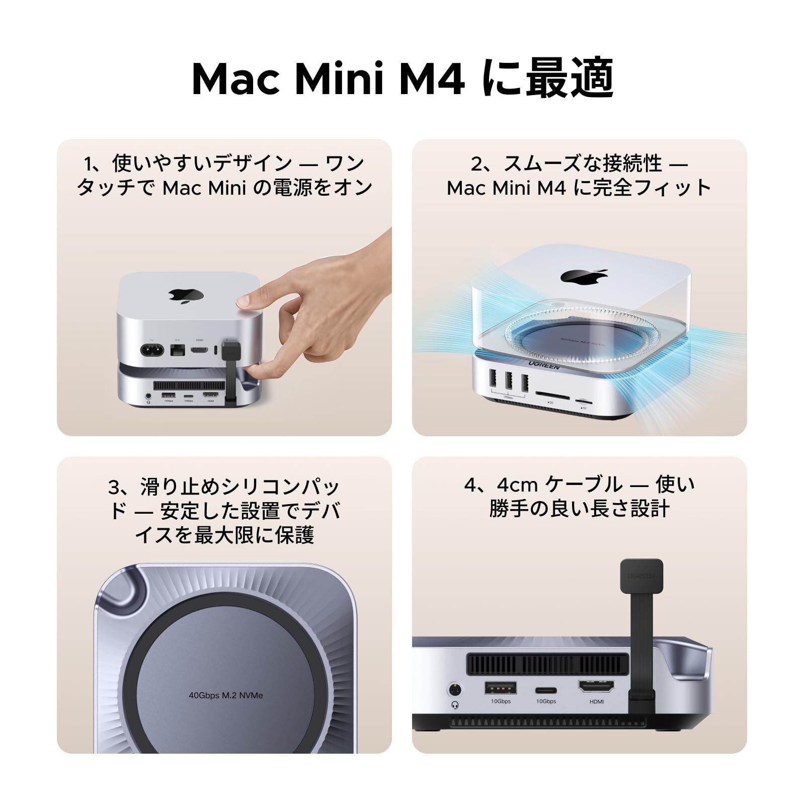 【新春セール】UGREEN 12in1 Macmini M4/M4 Pro ドッキングステーション 2画面表示 8K/4K高映像出力+M.2 NVMEスロット内蔵+40Gbps高速転送 USB4.0/USB3.2Gen2対応 SD4.0カードリーダー対応 アルミ合金フレームと内蔵静音ファン 智能冷却システム 12ポート mac mini m4 ドッキングステーション macmini ドック mac miniハブ