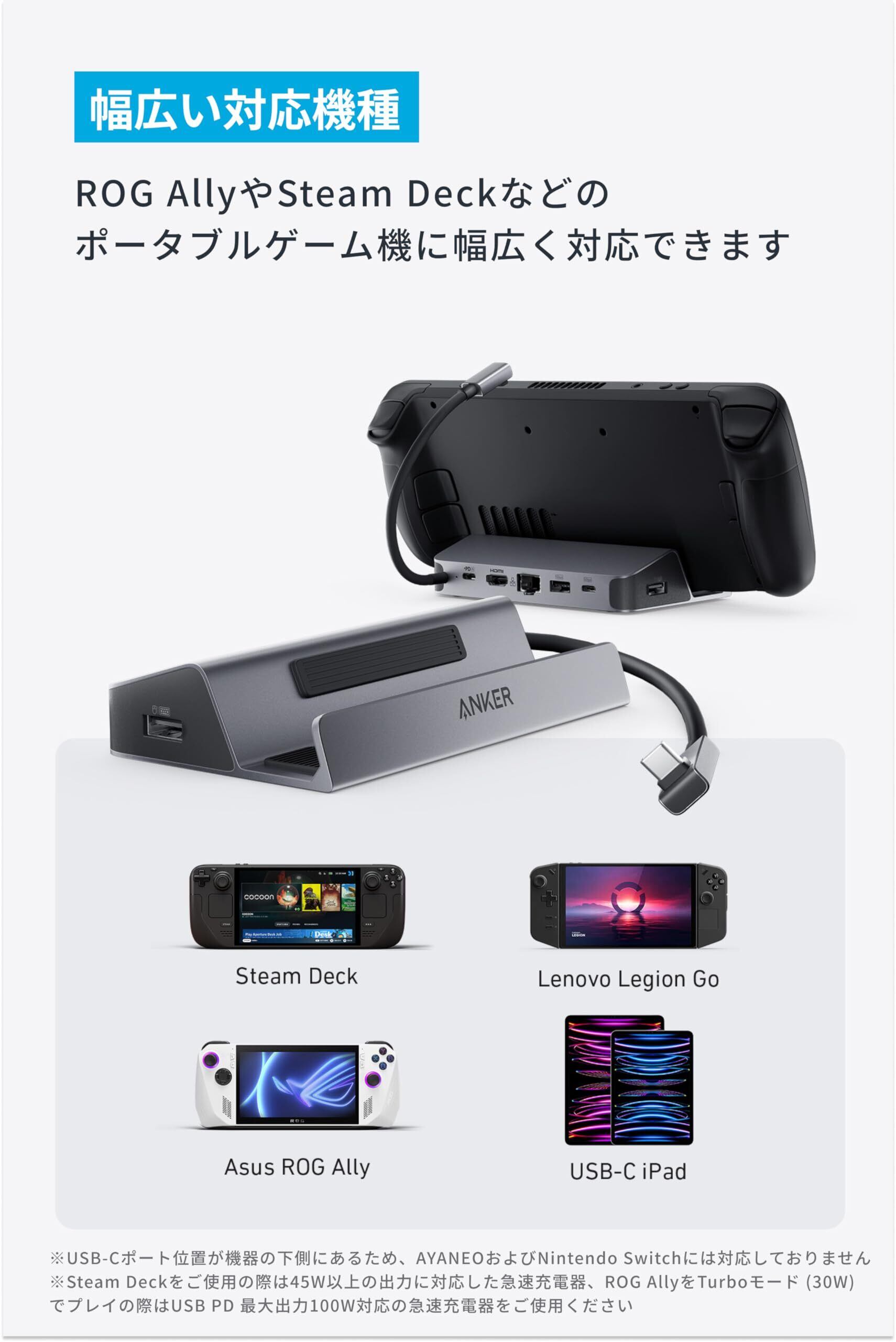 Anker USB-C ハブ (6-in-1, For Game Console) Steam Deck 高速データ転送 最大100W充電 USB PD対応 4K (60Hz) HDMI 2.0 ポート 1Gbps イーサネットポート Aポート Cポート/Asus ROG Ally/Lenovo Legion Go/USB-C iPad対応