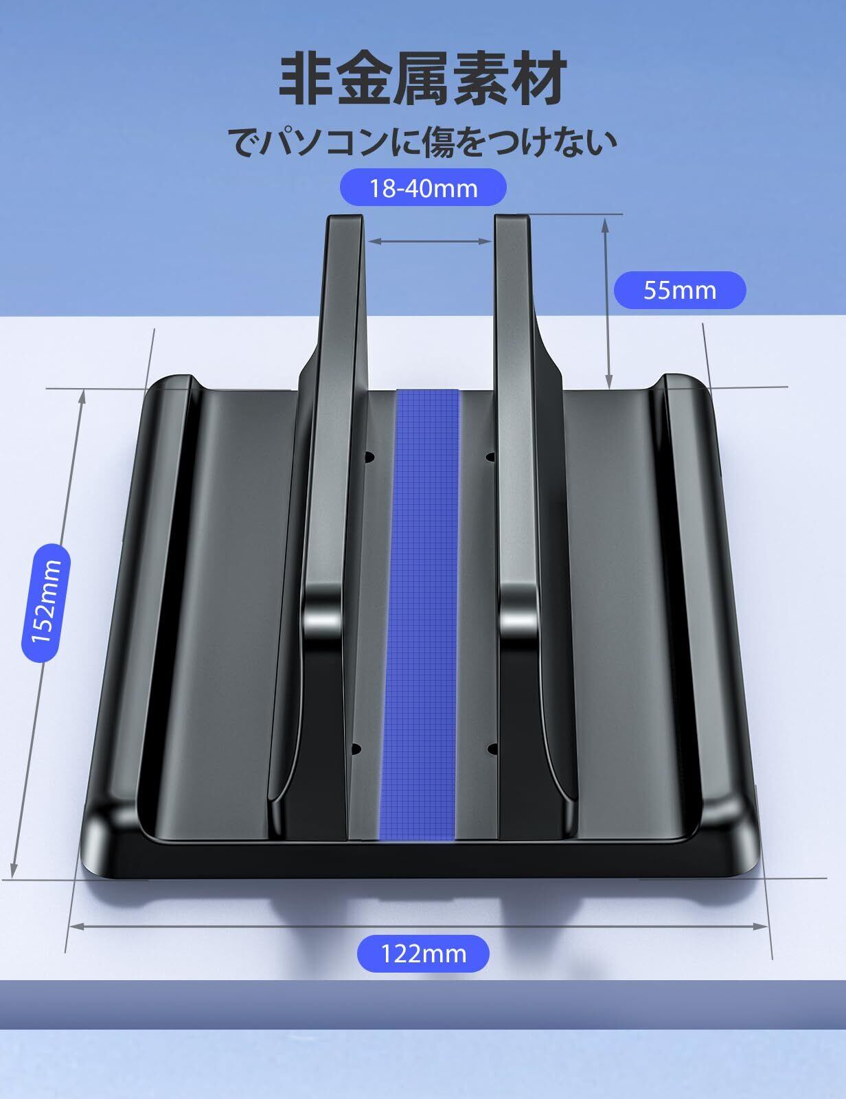 VAYDEER ノートパソコン スタンド PCスタンド 縦置き 収納 ホルダー幅調整可能 ABS樹脂製 for タブレット/ipad/Mac mini/MacBook Pro Air -ブラック