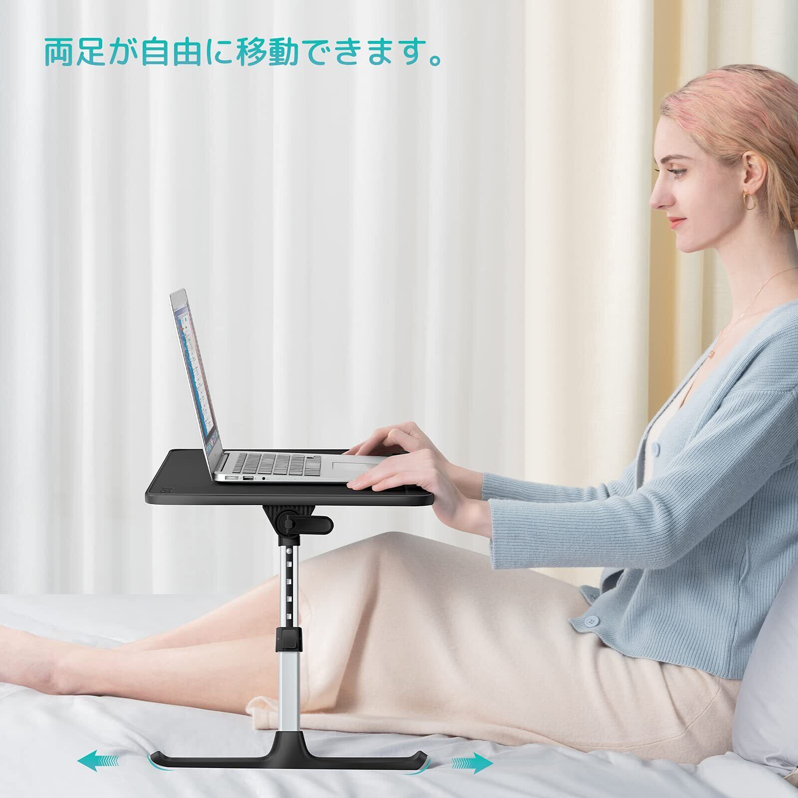 【高さ角度調節可能なベッド用ラップトップデスク】 角度と高さを調節できる機能により、トレイを最適な位置にカスタマイズでき、目・背中・首の疲れを軽減します。両側に2つのオートロックボタンがあり、高さの簡単な変更が可能です。脚部は9.4インチから12.6インチまでの5段階高さ調節が可能。天板下部には2つのクランプがあり、0°から36°までの4段階で角度を調節できます。