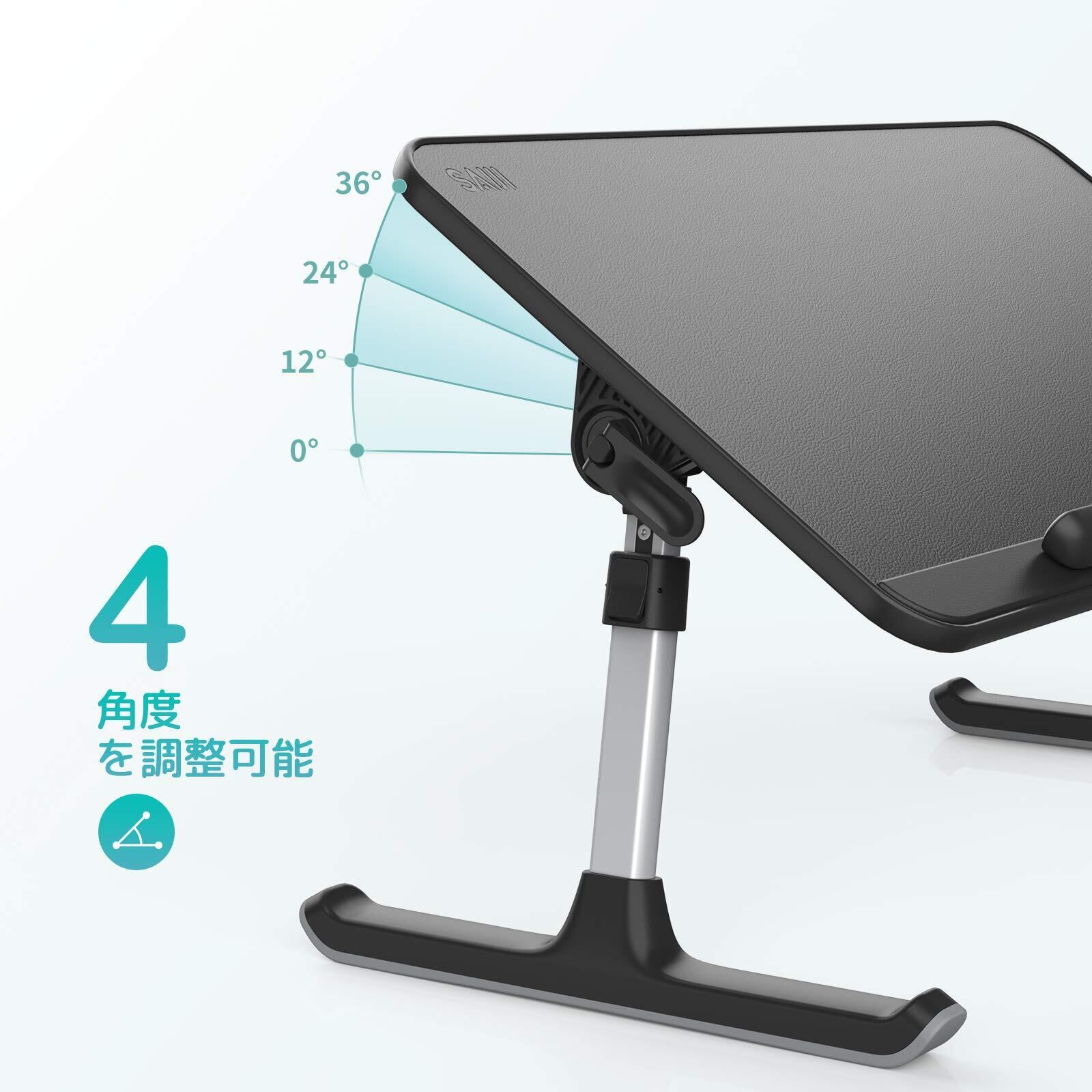 SAIJI レザー製 ラップトップベッドトレイテーブル、取り外し可能ストッパー付き高さ調節ラップトップスタンド、折りたたみ脚付きポータブルラップデスク、ソファ・カウチ用ノートブックスタンド朝食読書デスク(ミディアム、ブラック)