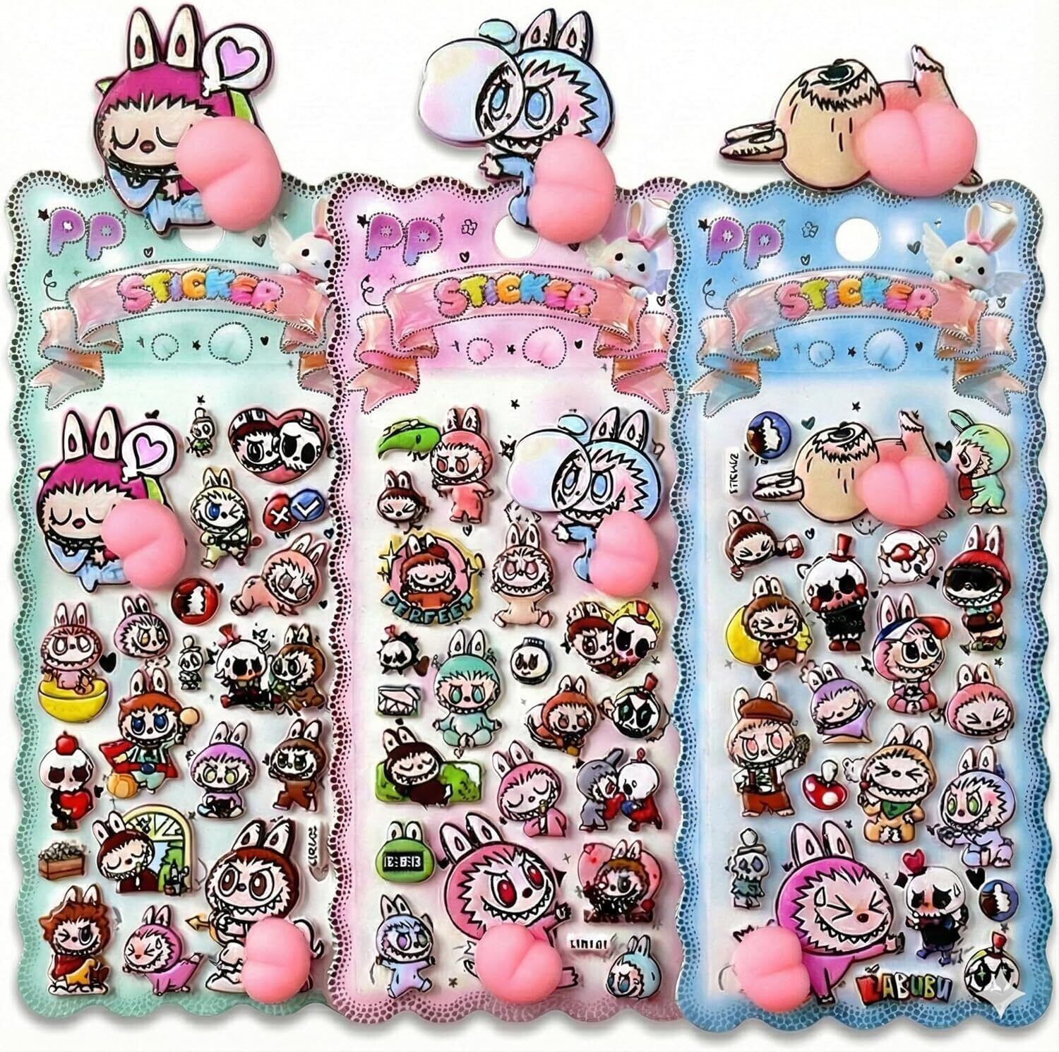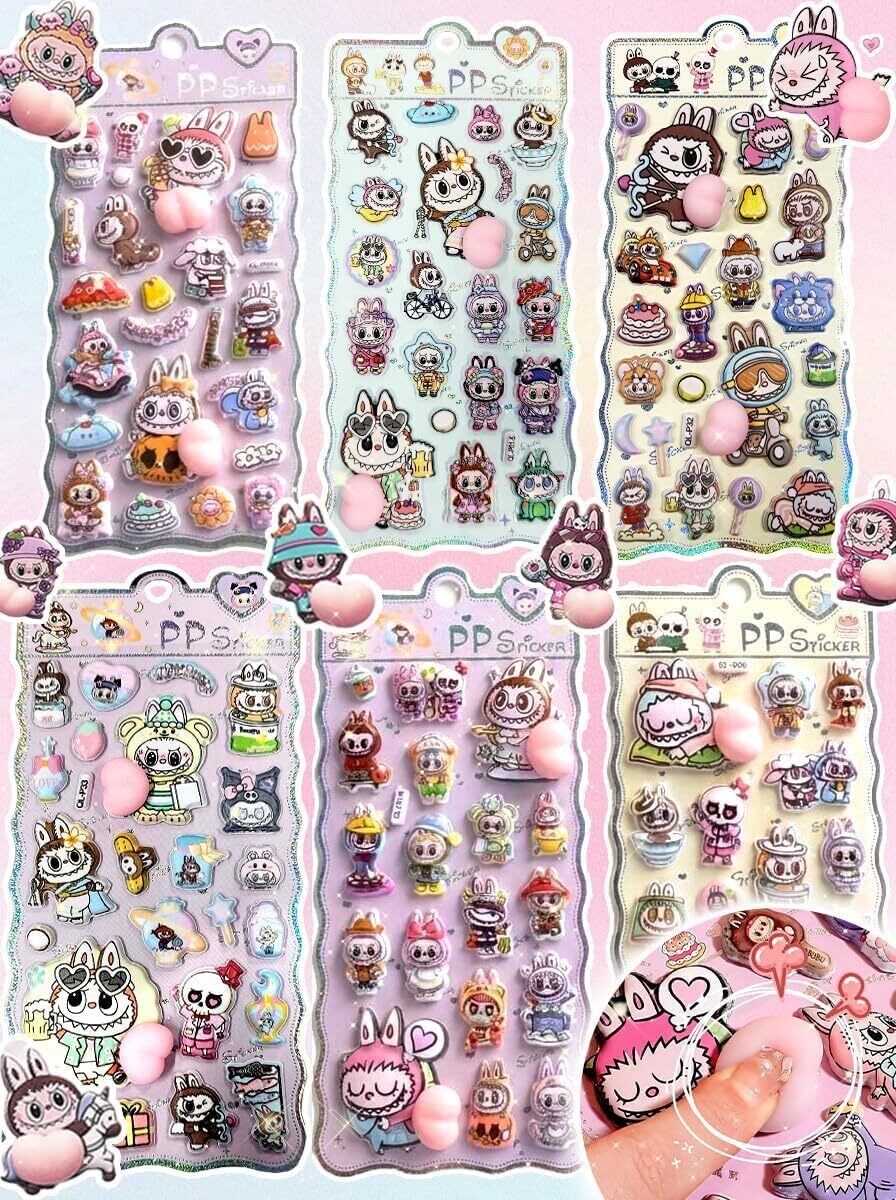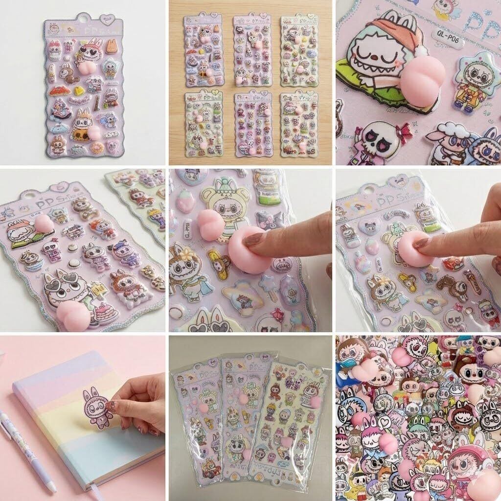 ぷくぷくおしり 3D立体 ぷにぷに むにむに デコステッカー ごほうびシール 手帳 スマホ DIY 日記帳 女の子 子供 大人 プレゼント (モンスター, 6枚セット)