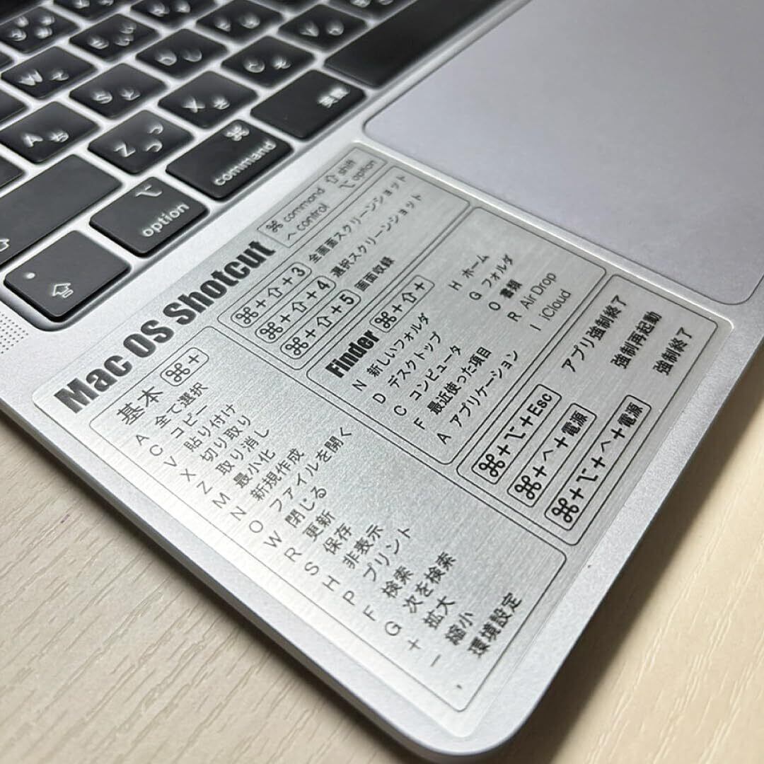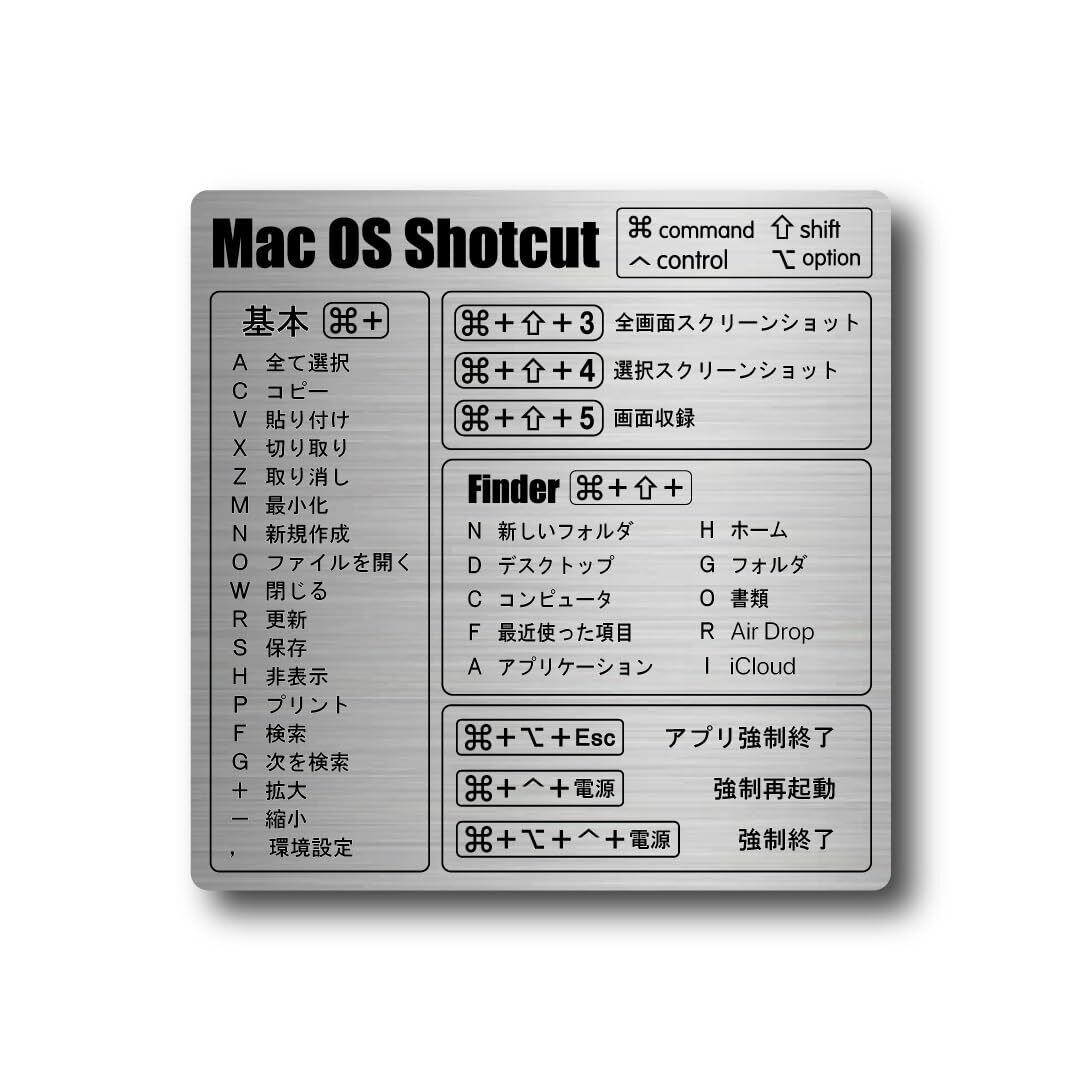 Mac OS用 ショートカット ヘアライン ステッカー マットラミネート システム操作用 mac shortcuts Mac Book Air/Pro、MacBook for mac 一覧シール ショートカットキー早見表 時短&効率化 ノートPCにぴったりサイズ 操作効率アップ 日本語表記 国内生産 防水 防傷 キズ隠し 丈夫B-031HE