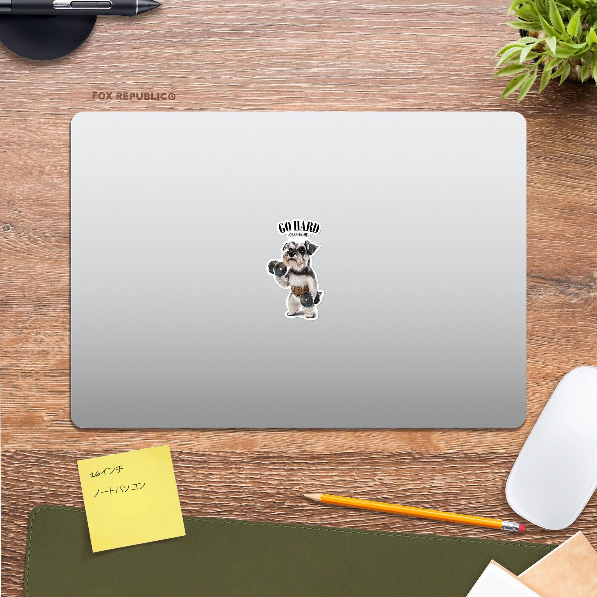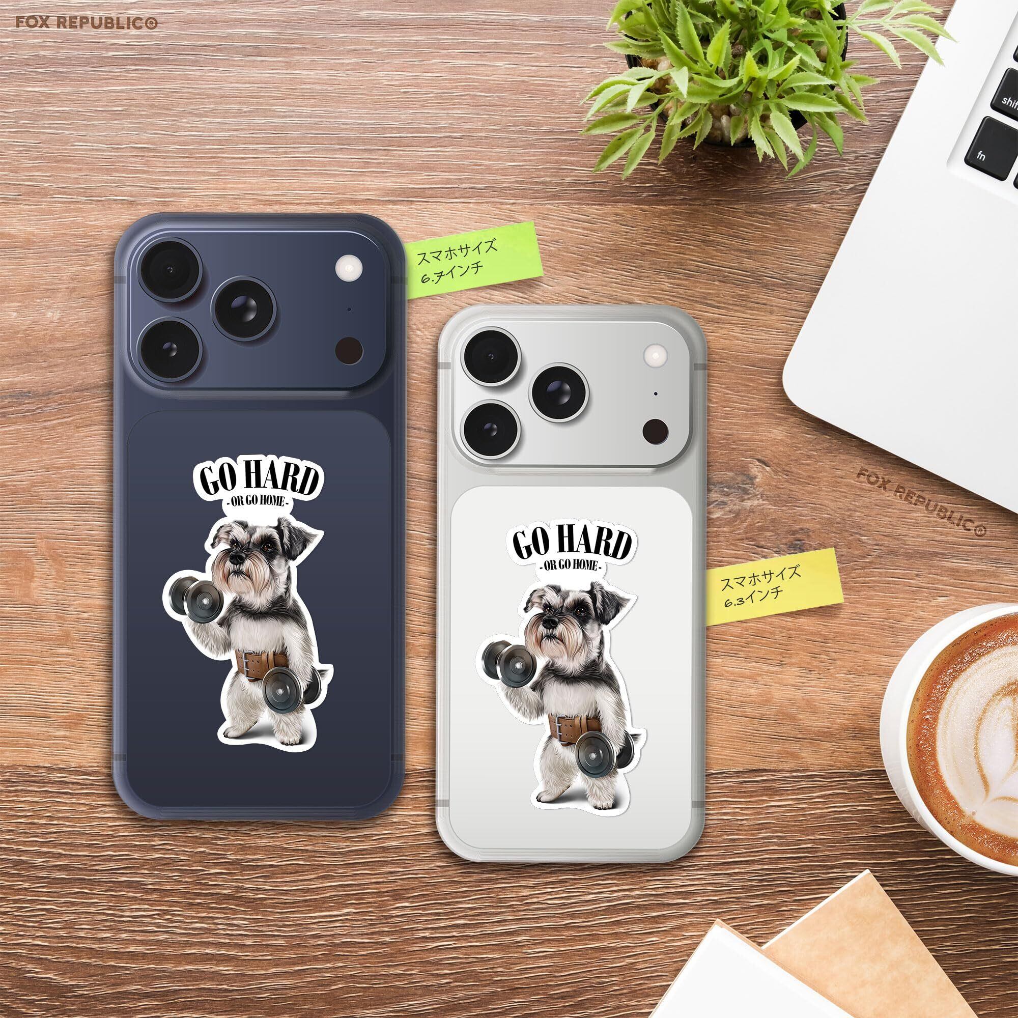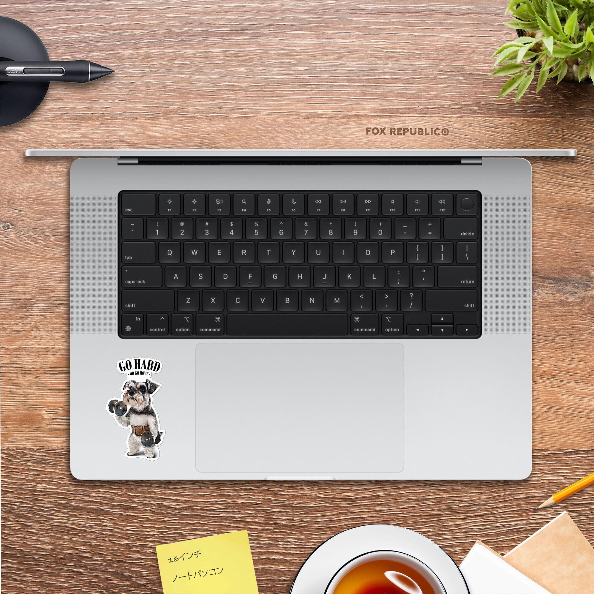 Fox Republic シュナウザー いぬ 犬 ダンベル 筋トレ 筋肉 ワークアウト ジム 防水 ステッカー デカール 耐候性 ノートPC スマホ タンブラー ノート用 8cm ホワイト背景