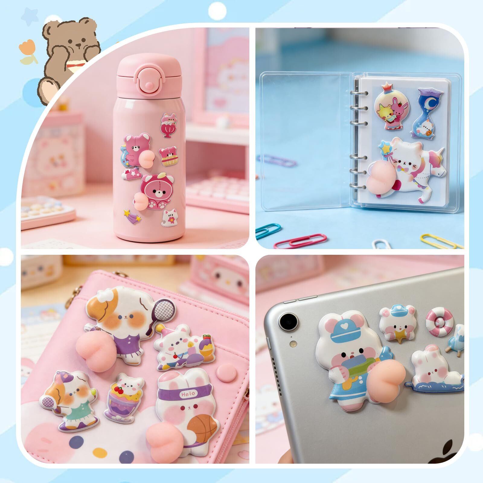 【ぷにっとした立体デザイン】高品質のエポキシ樹脂素材を採用しており、ふっくらと盛り上がった立体構造で、指で押すとやさしく弾むぷにぷに触感が楽しめます。平面タイプとは異なるクッション感があり、夜光仕様のため暗い場所でもほんのり光り、手帳や日記のデコレーションにさりげないアクセントを加えます。