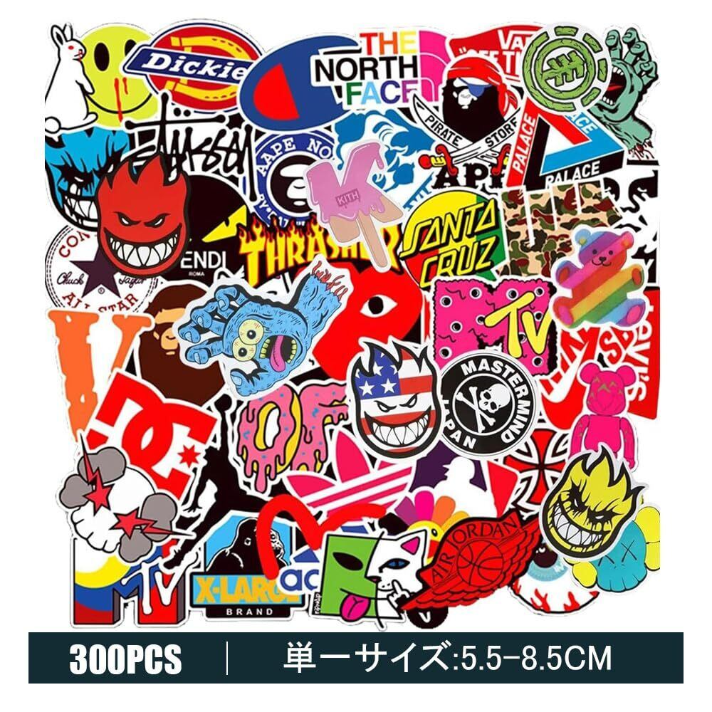 300枚 ブランド ステッカー セット 漫画ご褒美シール DIY 素材 スーツケース ギター 車 自転車 水筒 スケート パソコン 子供 学生 ギフト 誕生日 プレゼント 贈り物に適用