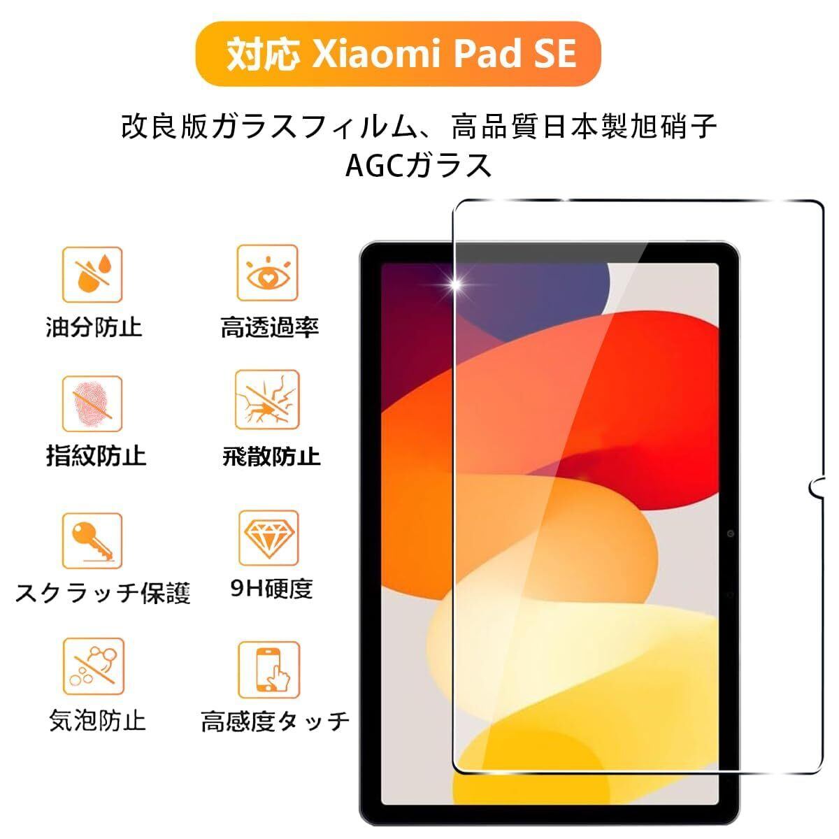 【9H強度&飛散防止】対応 XiaoMi Redmi pad SE 強化ガラス 保護フィルムは日本旭硝子素材を採用します。 落下、スクラッチ、衝突、衝撃に高い耐久性があります 衝撃を最小限に抑えて画面の破損を抑え。カッターなどの鋭利なものを当たってもキズが付きにくくて高い強度を持ち表面硬度9Hが特徴です。特殊な飛散防止設計により、万一割れてしまった際にも飛散することなく、高い安全性を実現します。