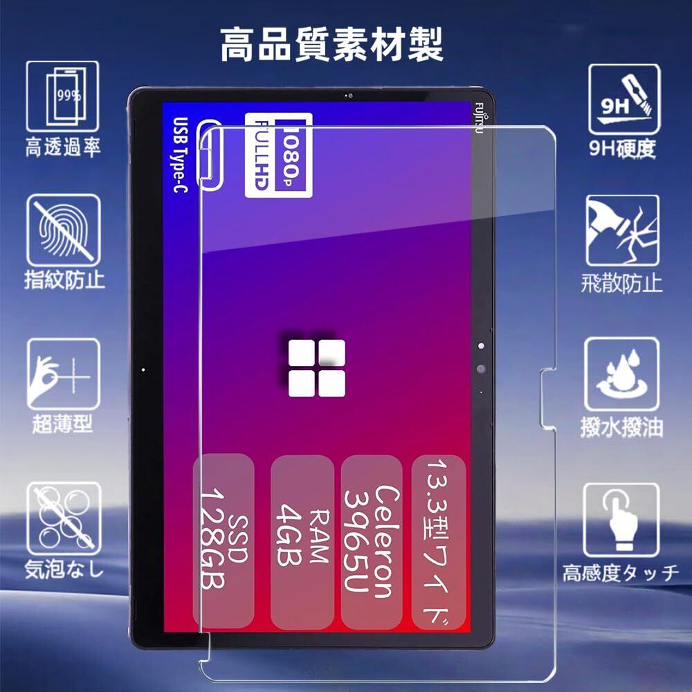 For 富士通 ARROWS Tab Q738/Q739 フィルム 13.3インチ タブレット 対応 ガラスフィルム 高感度タッチ 日本旭硝子製 高透過率 防水 耐油 硬度9H 指紋防止 気泡防止 耐衝撃 貼り付け簡単 超薄飛散防止 強化ガラスフィルム 富士通 ARROWS Tab Q738/Q739 対応