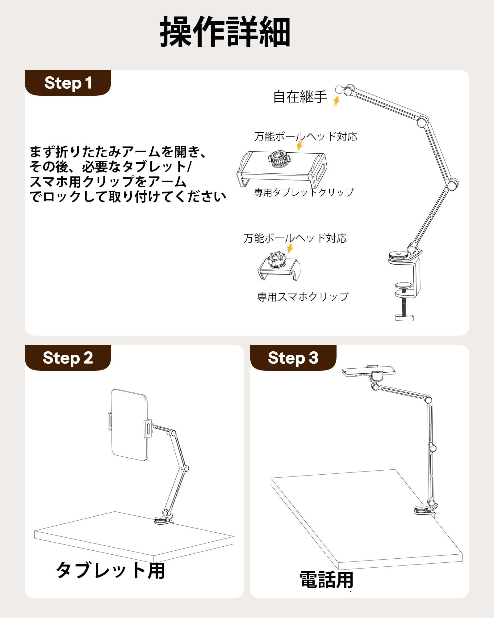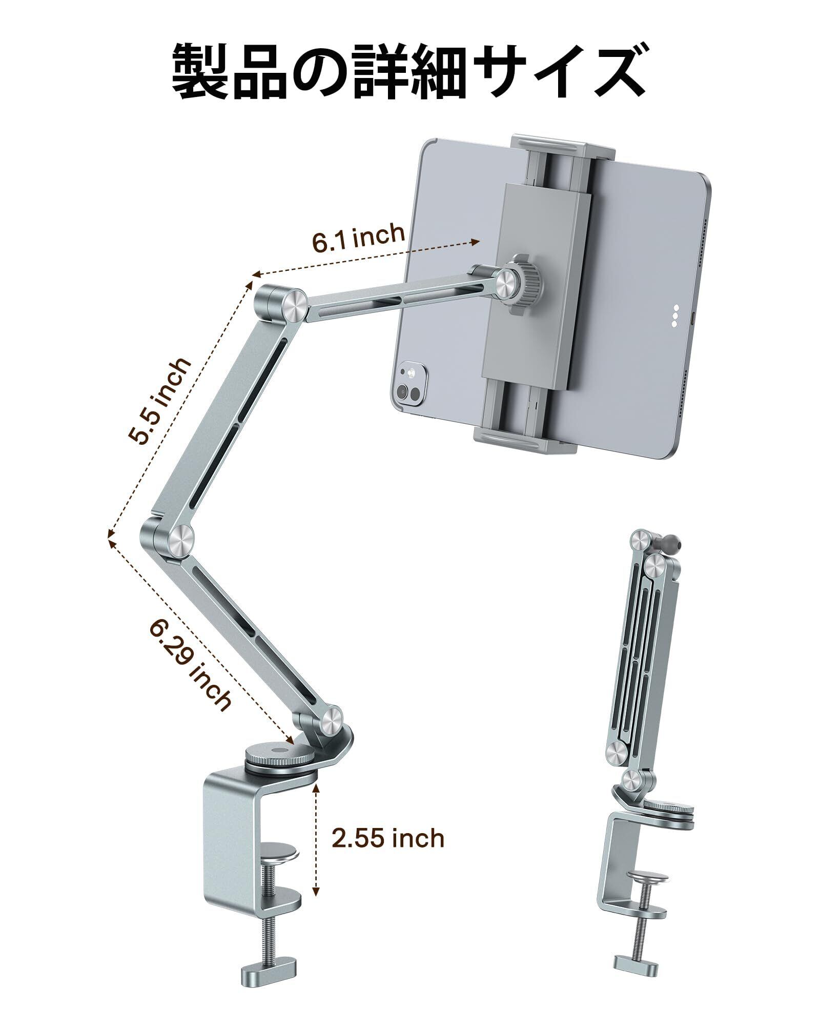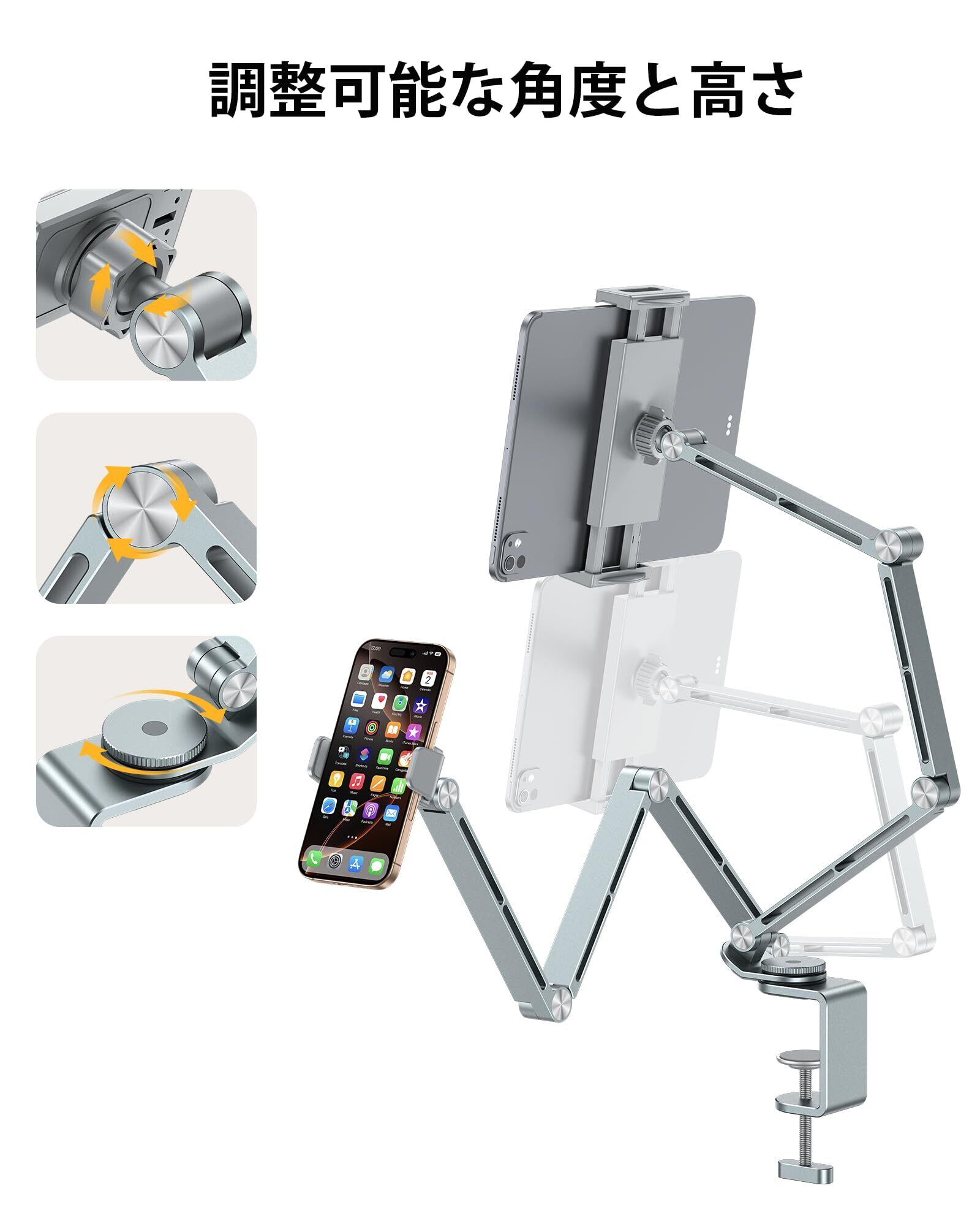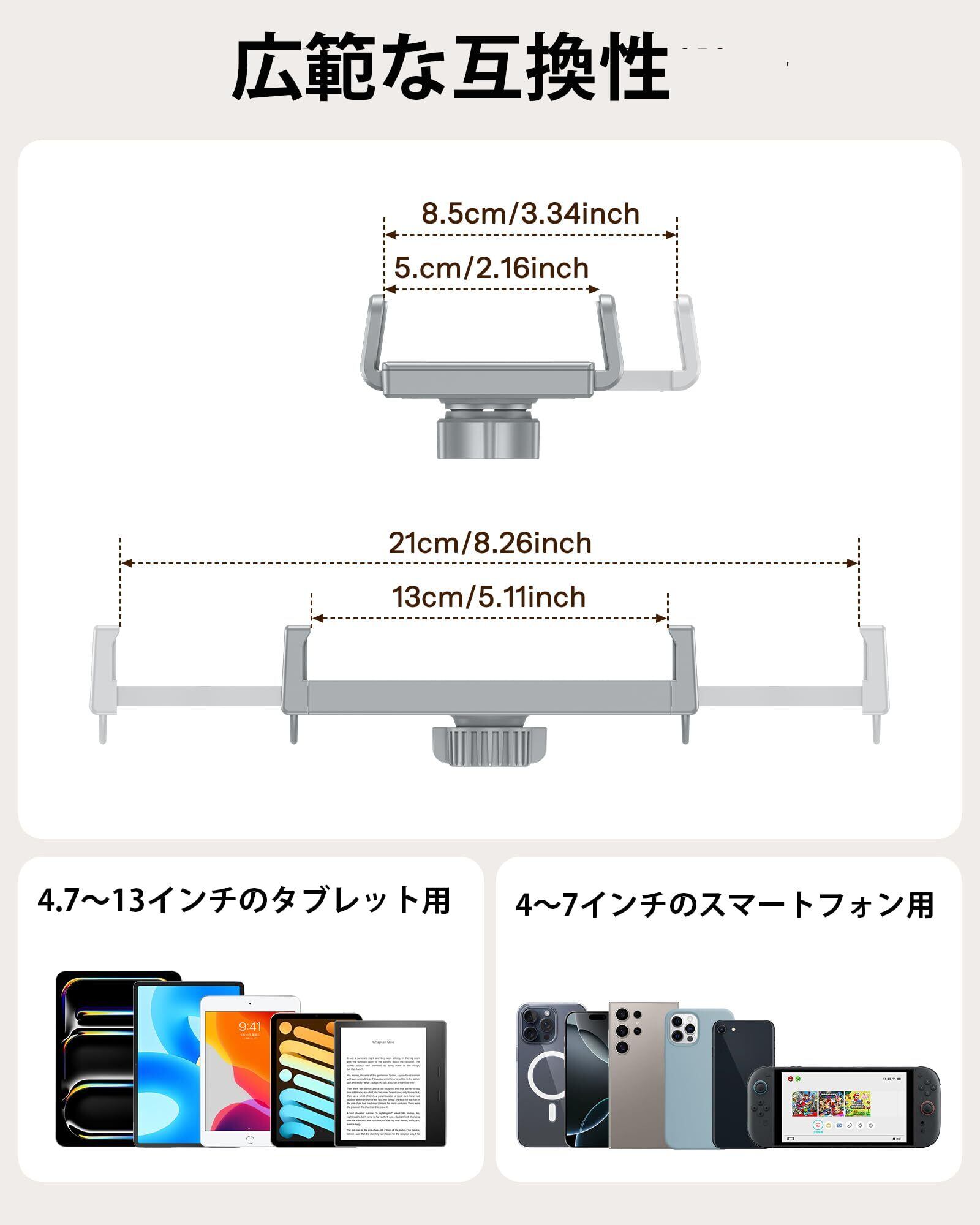 【幅広い端末対応 】 iPhone (SE/13 mini等) から iPad Pro 12.9インチまで、サイズ4.7インチ~12インチのスマホ・タブレット・電子書籍端末(iPad, iPhone, Kindle, Android等)を強力ホールド。専用ケース装着のままでもしっかり固定