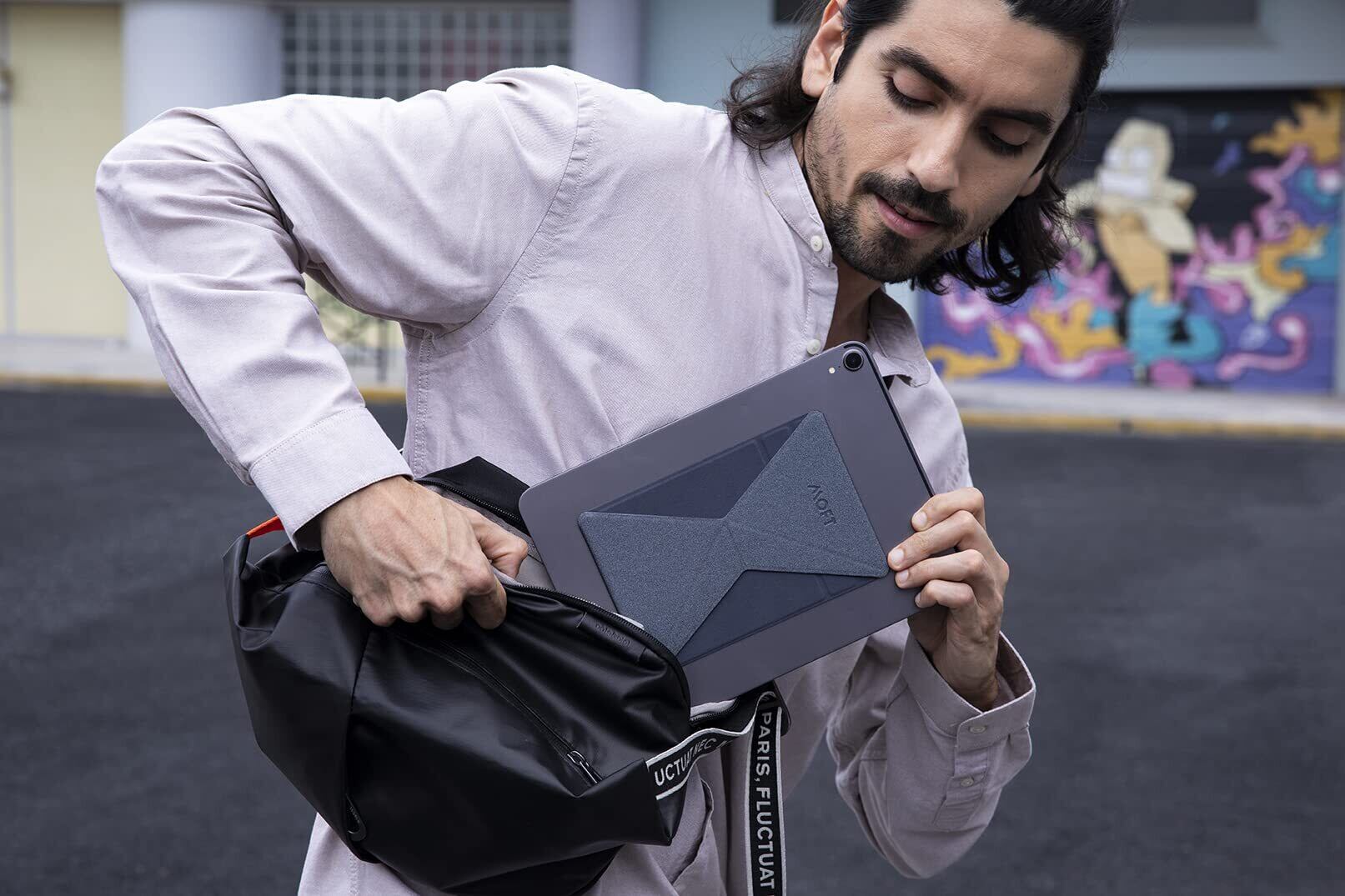 純正と変わらないカッコよさ、はっきり変わる薄さ。 純正のタブレットケースと比較すると、MOFT Xの薄さは一目瞭然。存在していることを感じさせない薄さは、紙(神)レベル。