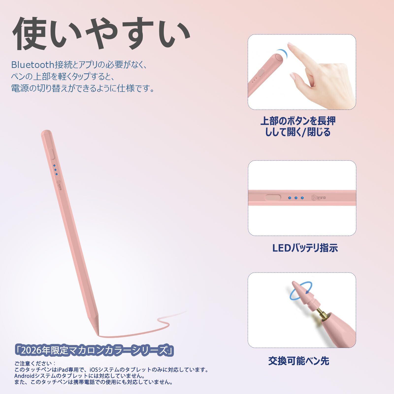 【2022最新】アップルペンシル級急速充電 タッチペン ipad 高感度&低遅延 Apple Pencil互換 滑らかさ/磁気吸着/傾き感知/電量表示/誤作動防止機能対応 ペンシル 軽量 耐摩 耐久 スタイラスペン (ピンク)