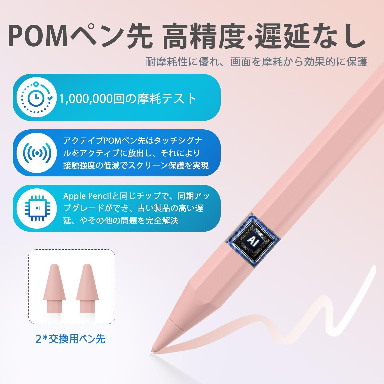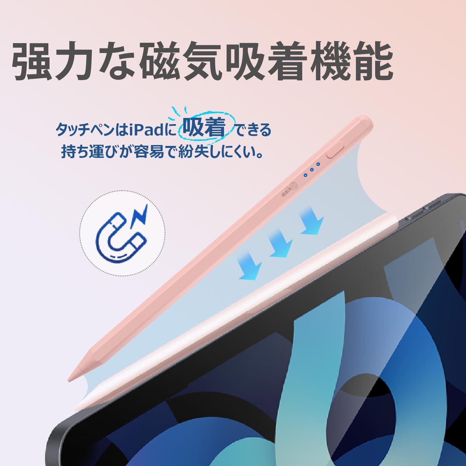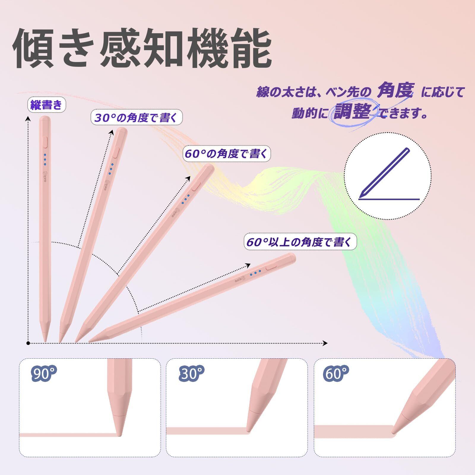 アップルペンシル級急速充電 タッチペン ipad 高感度&低遅延 Apple Pencil互換 滑らかさ/磁気吸着/傾き感知/電量表示/誤作動防止機能対応 ペンシル 軽量 耐摩 耐久 スタイラスペン (ピンク)