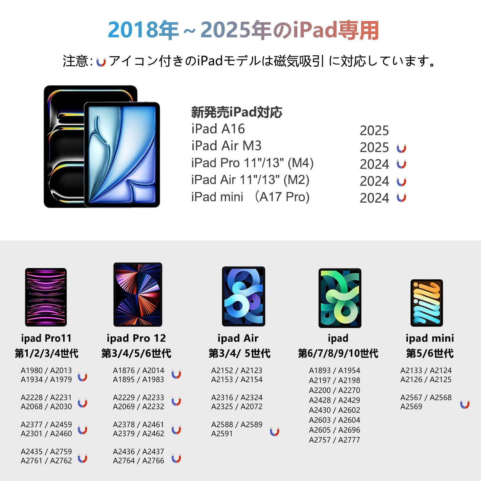 【2018年以降のipad専用ペン】 ipad (第六/七/八/九/十世代), ipad Pro 11", ipad Air (第三/四/五世代), ipad Mini (第五/六世代), ipad Pro 12.9"(第三/四/五/六世代)。購入した商品が12ヶ月のを提供しています。お使用中に不具合発生したら、いつでもお気軽に出品者までご連絡ください、無料交換対応をさせていただきます。