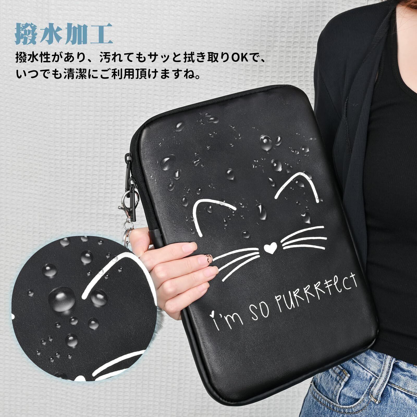 【360°全方位保護】:タブレットケース内部の厚くてふわふわしたクッションは衝撃吸収効果に優れています。 ジッパーの周りに保護パッドも付いており、傷を防止し、大切なタブレットを保護します。 耐水性のあるPU生地は見た目以上に耐水性があります。 多少の汚れがついても拭くだけで簡単に取れます。 雨や雪からの水が浸入せず、大切なタブレットや周辺機器を濡れから守ります。