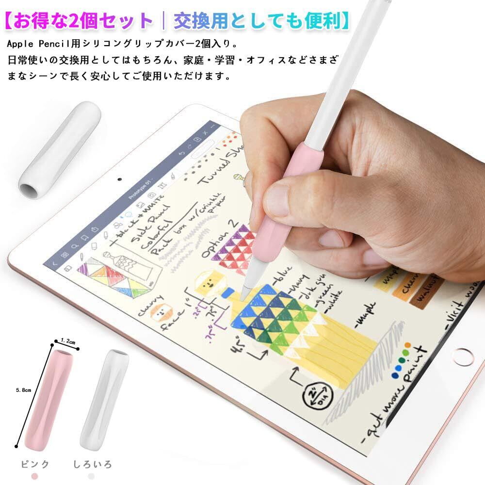 シリコングリップ Apple Pencil Pro & Apple Pencil 第1/2世代 & USB-C用 グリップ 握りやすい 疲れ軽減 滑り防止 アップルペンシル 2個入り (しろいろ+ピンク)