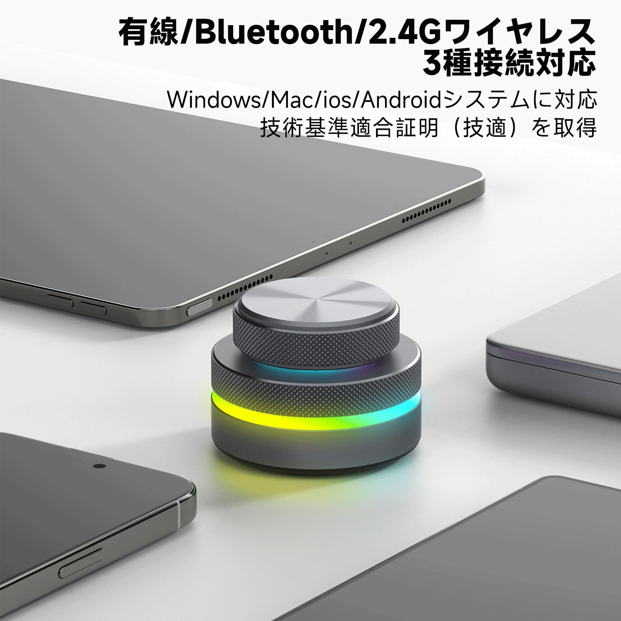 左手デバイス マクロキーボード ボリュームコントローラー 片手/Bluetooth 2.4G ワイヤレス 有線 初心者友好 持ちやすい 動画/音楽編集 プログラマブルキーボード ショートカットキー カスタマイズ可能 ショートカットキー/テキスト入力/マルチメディア機能/電子ブック閲覧など対応 バックライト付き (二層ノブ)