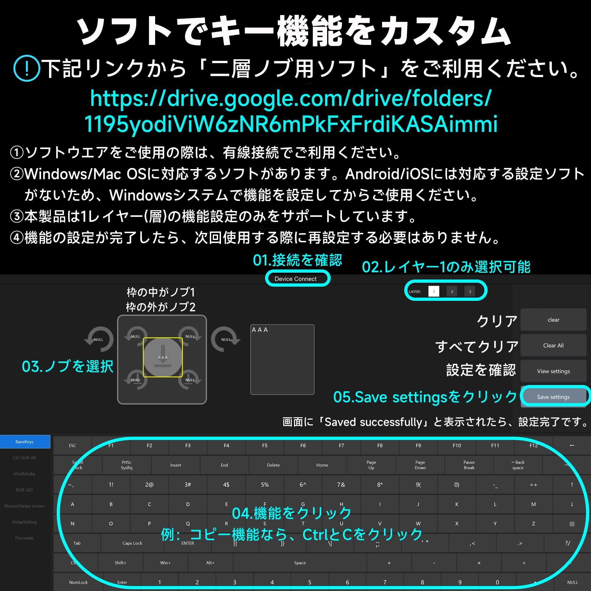 【Windows/Mac/ios/Androidシステムに対応】ボリュームコントローラーはWindows/Mac/ios/Androidシステムに対応しています。(ご注意:ios/Androidシステムは、使用する前にWindowsシステムで機能を設定する必要があります) インストールソフトウェアのダウンロードアドレスは下記通り: (https://drive.google.com/drive/folders/1195yodiViW6zNR6mPkFxFrdiKASAimmi) なお、ダウンロードをする際に、ファイアウォールによる警告窓口が現るかもしれませんが、ご心配なく利用してください。
