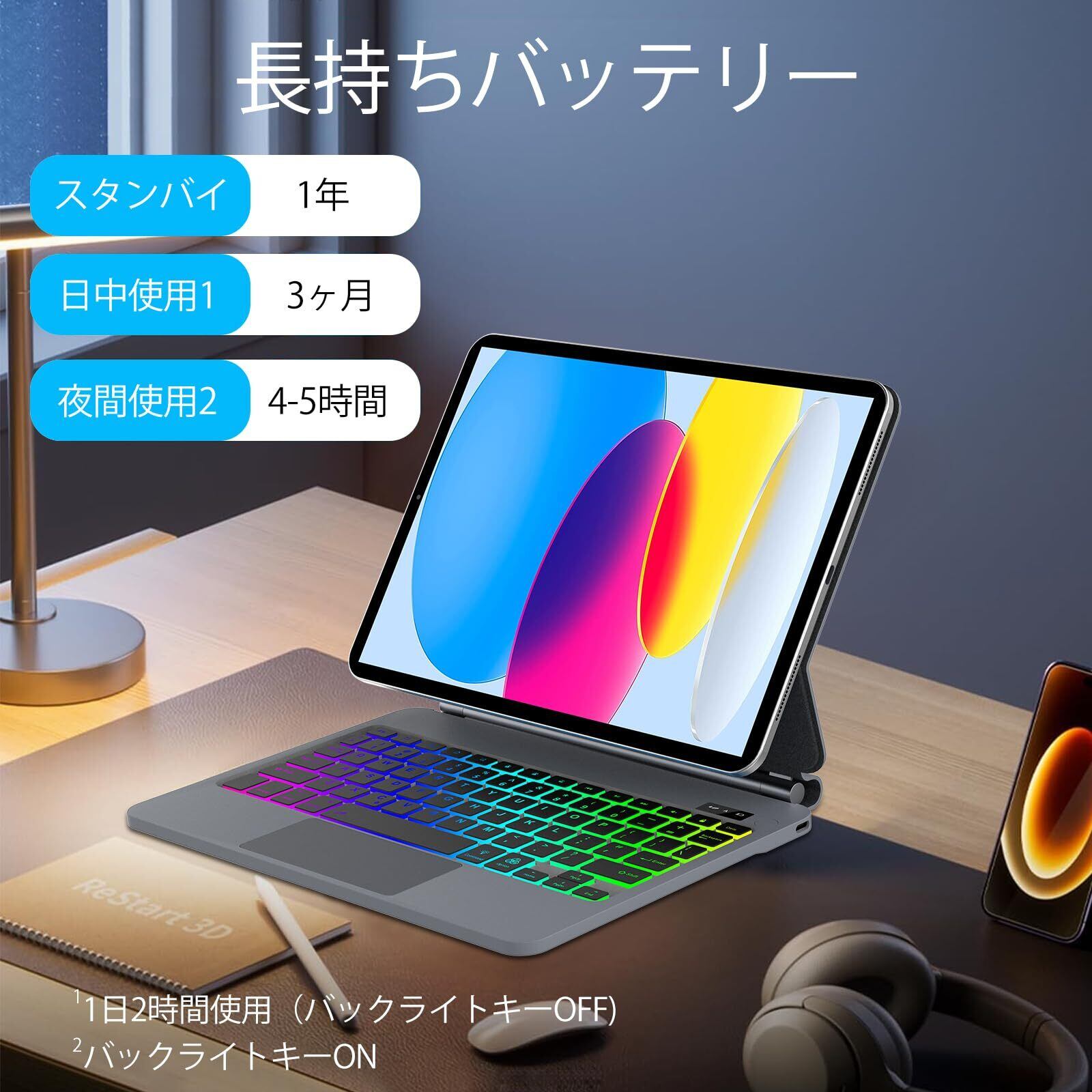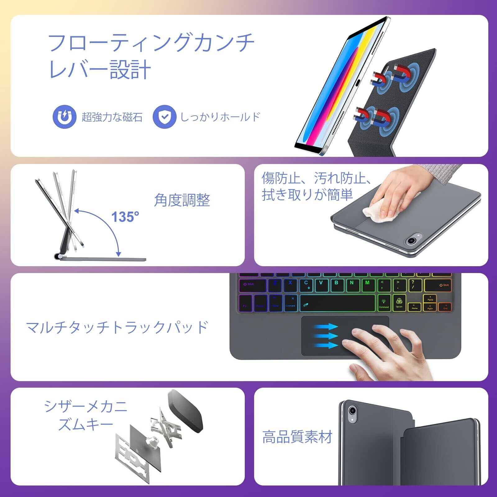 マジックキーボード iPad 第11世代 A16 / 第10世代 キーボード ケース 10.9インチ 兼用 磁気吸着 フローティングデザイン 七色バックライト 英語配列 トラックパッド搭載 オートスリープ機能