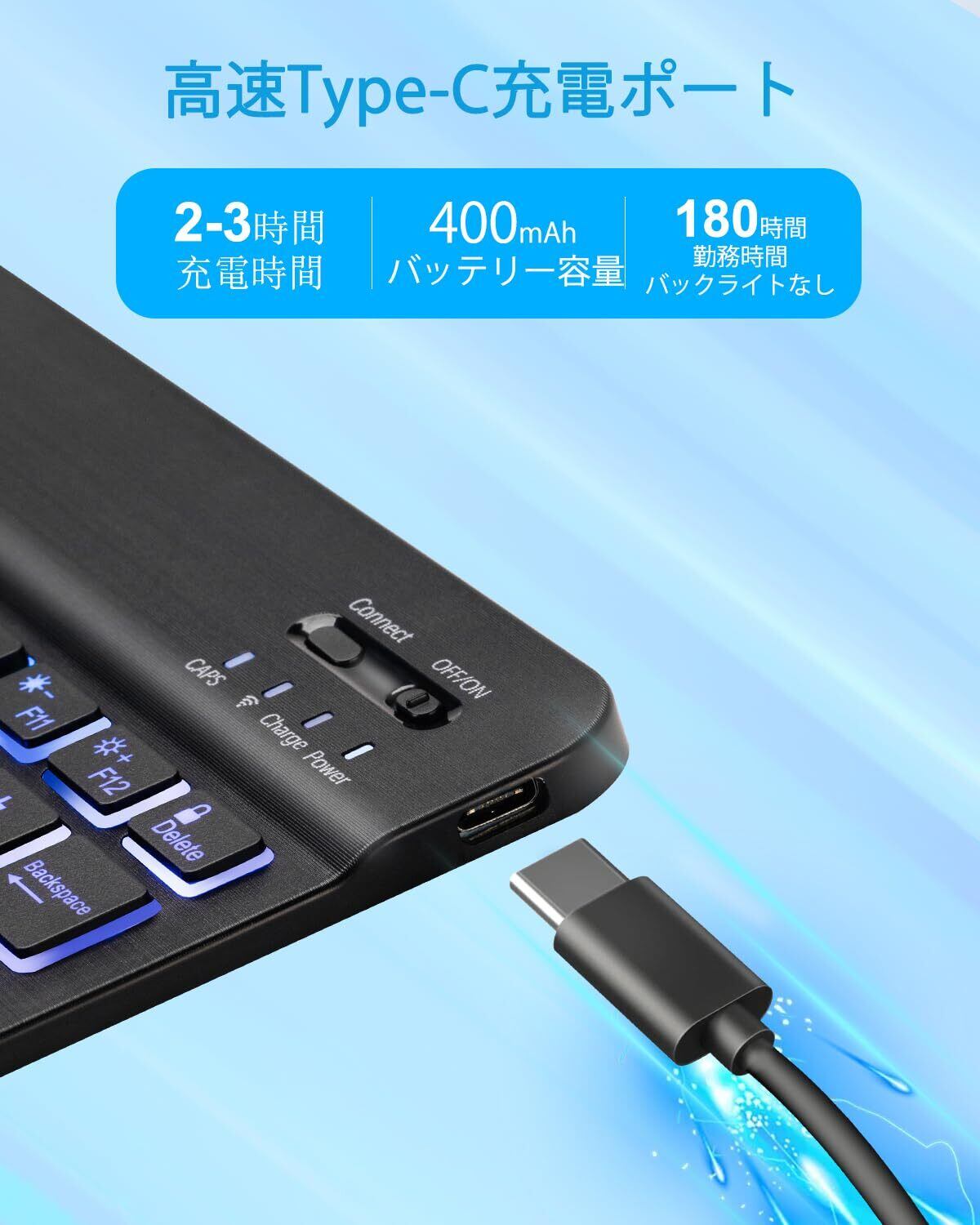 【在庫セール】JIS日本語配列 iPad 第9世代/8世代/7世代 10.2インチ/Air 3/Pro 10.5 キーボード付きケース, 7色レインボーバックライト Type-C充電 脱着式 スマート 多機能 ワイヤレス キーボード 360度回転 横置き縦置きの立ち方 磁気ケース軽量全面保護多角度調整鉛筆ホルダー付きケース 日本語取扱説明書付き 黒
