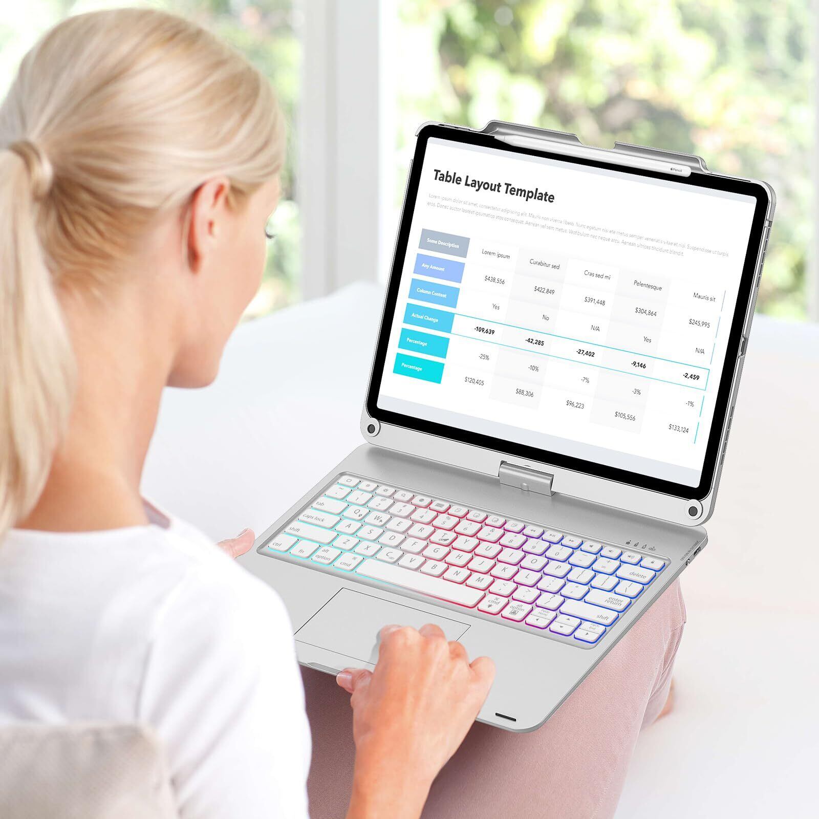 iPad air 13 インチキーボード(M3 2025/M2 2024) iPad Pro 12.9 第6/5/4/3世代 キーボードケース 360°回転180°反転 タッチパッド付き スマート 7色バックライト急速充電可能 全面保護Bluetoothキー ボード 一体式 Apple pencilを充電可能 スタンド機能付き 日本語説明書 シルバー